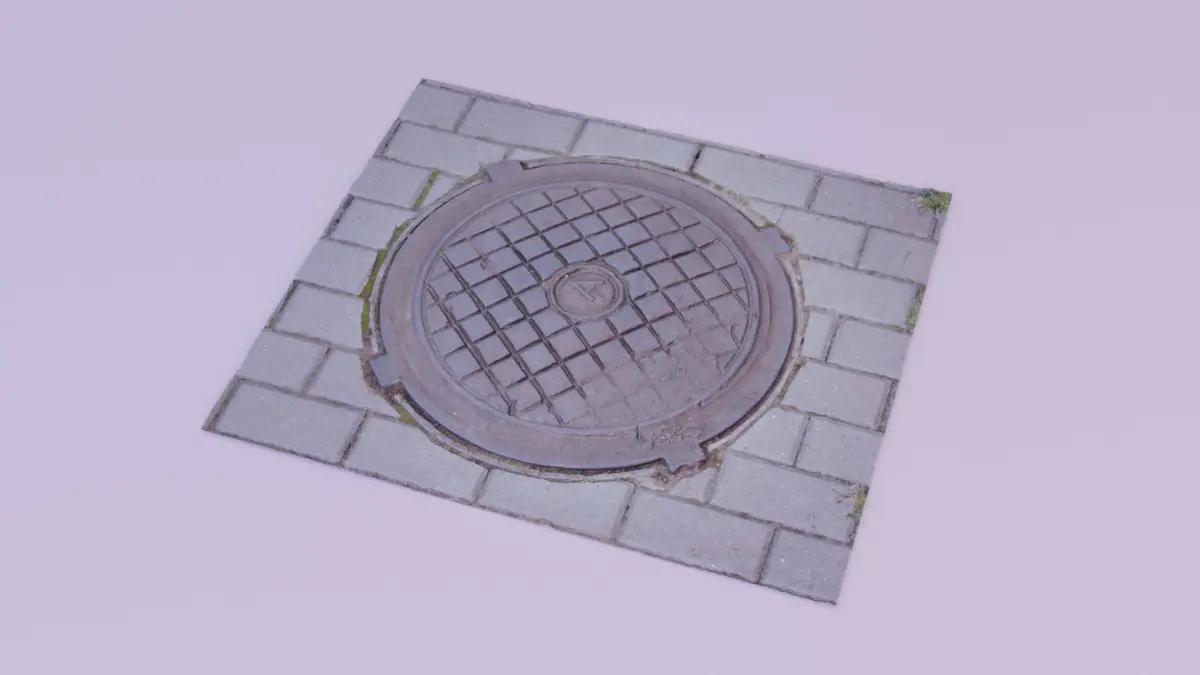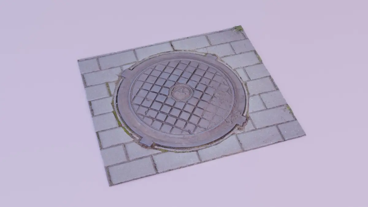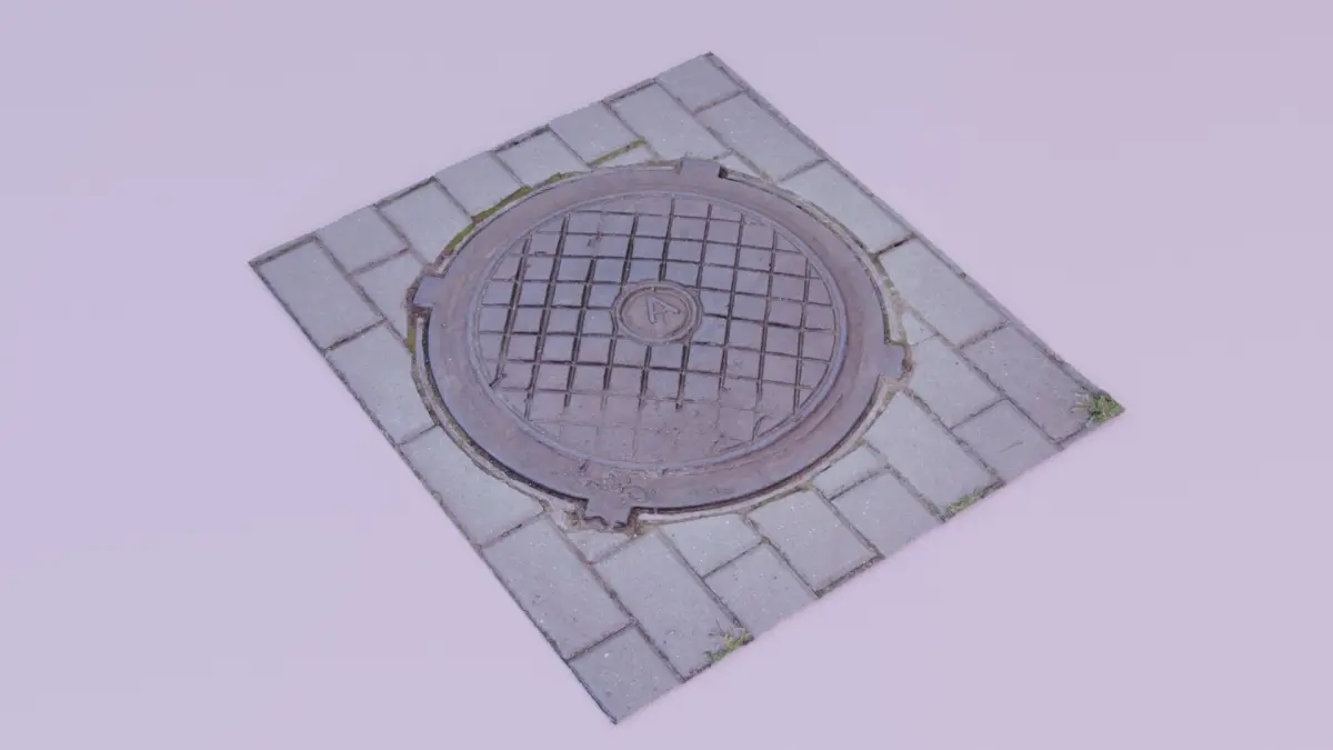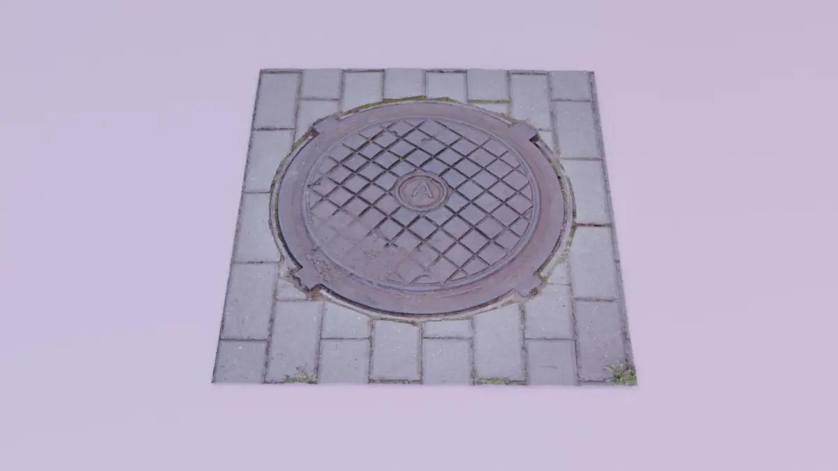 This is a photorealistic high-poly 3D model of the real word street cover manhole.