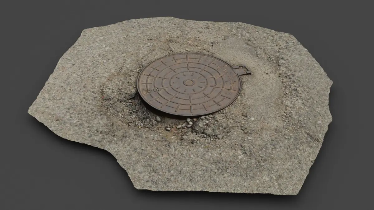 This is a photorealistic high-poly 3D model of the real word street cover manhole.