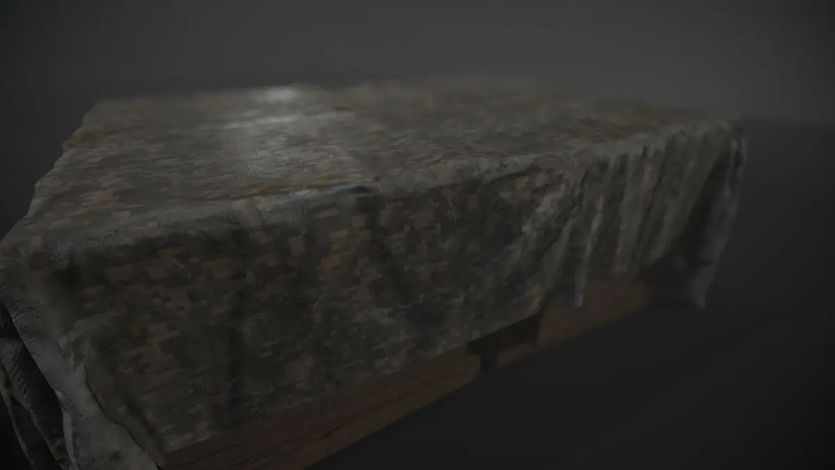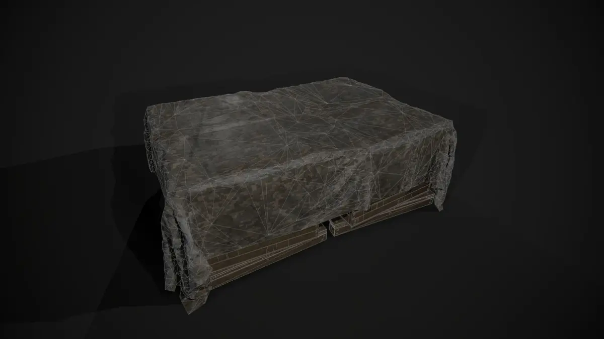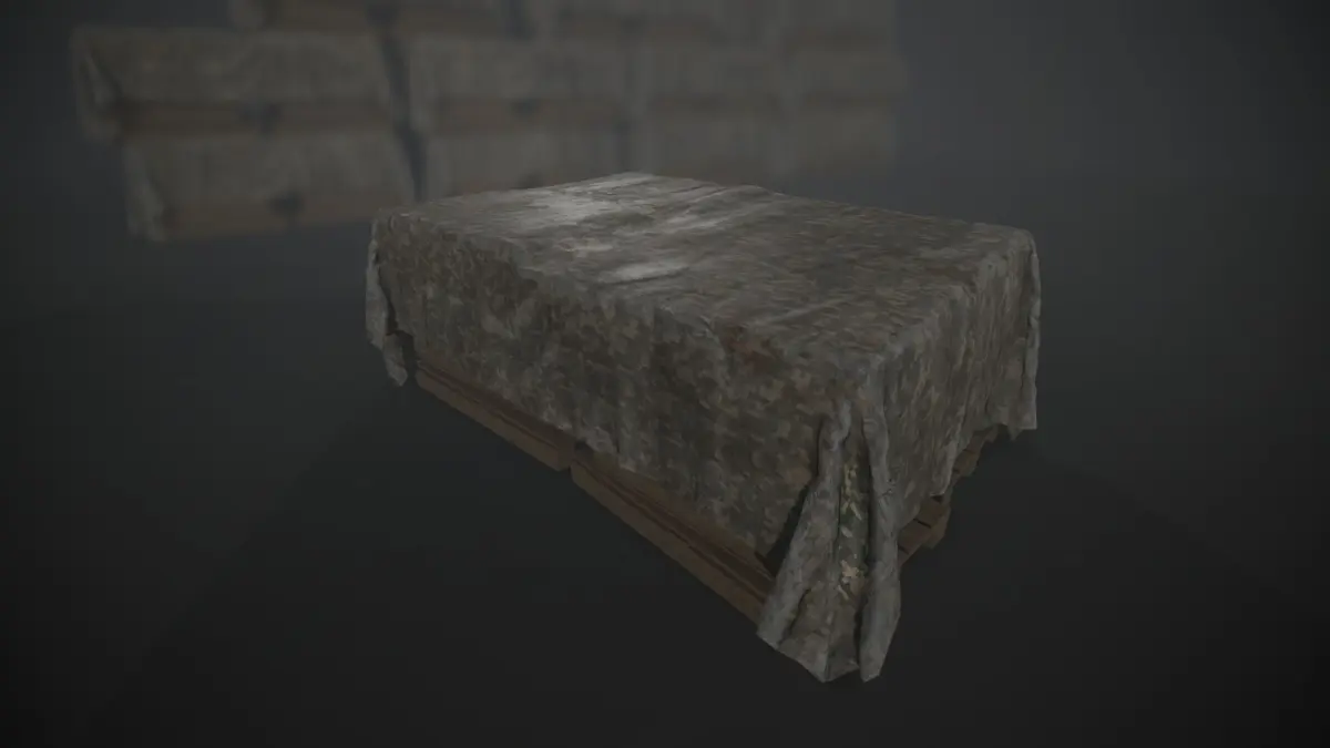 Low poly - Game ready asset of army crates on a pallets covered with army themed fabric.