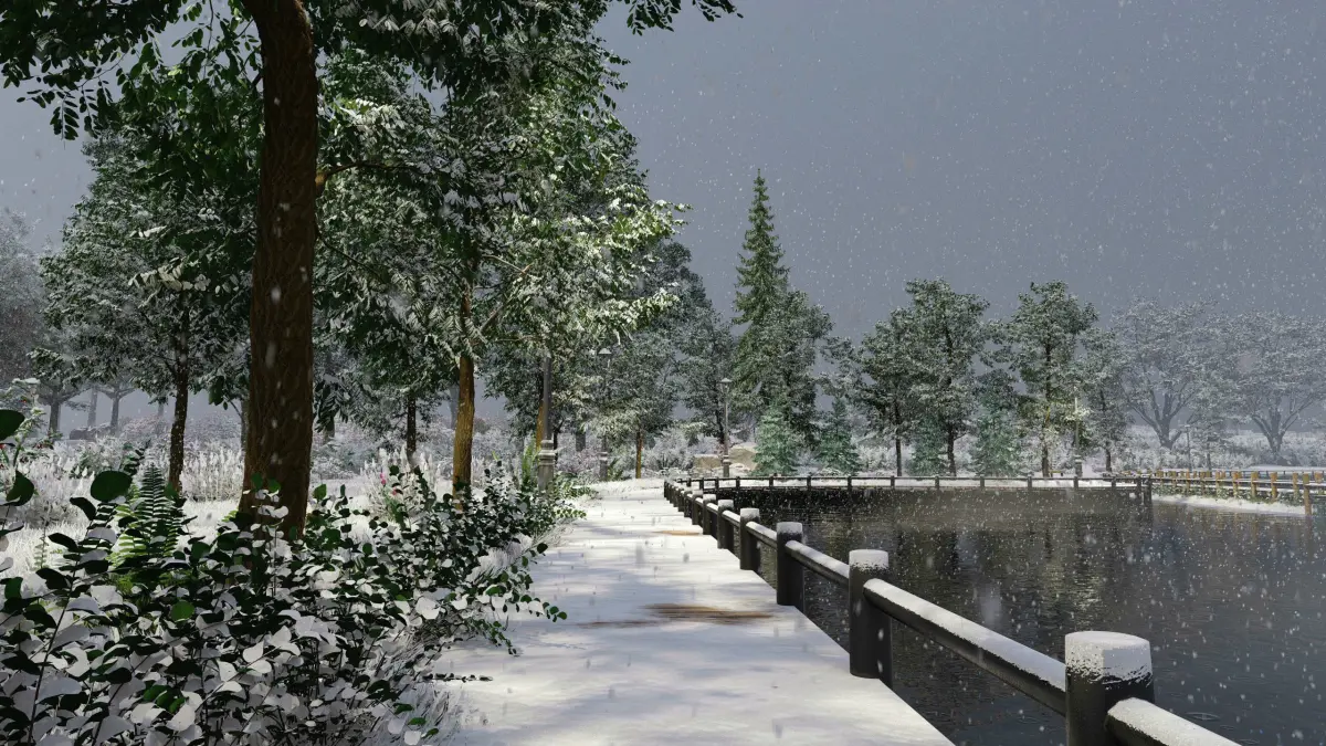 The changing effect of the four seasons of spring, summer, autumn and winter is by rendering the 4 shots of the four seasons and compositing in After Effects.