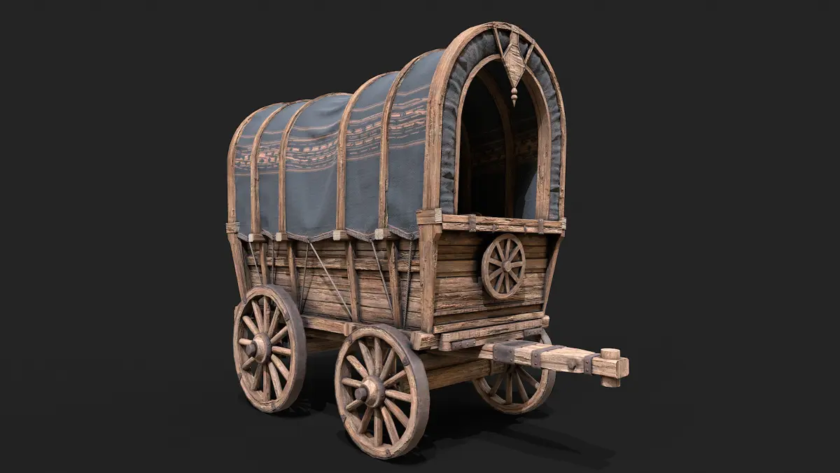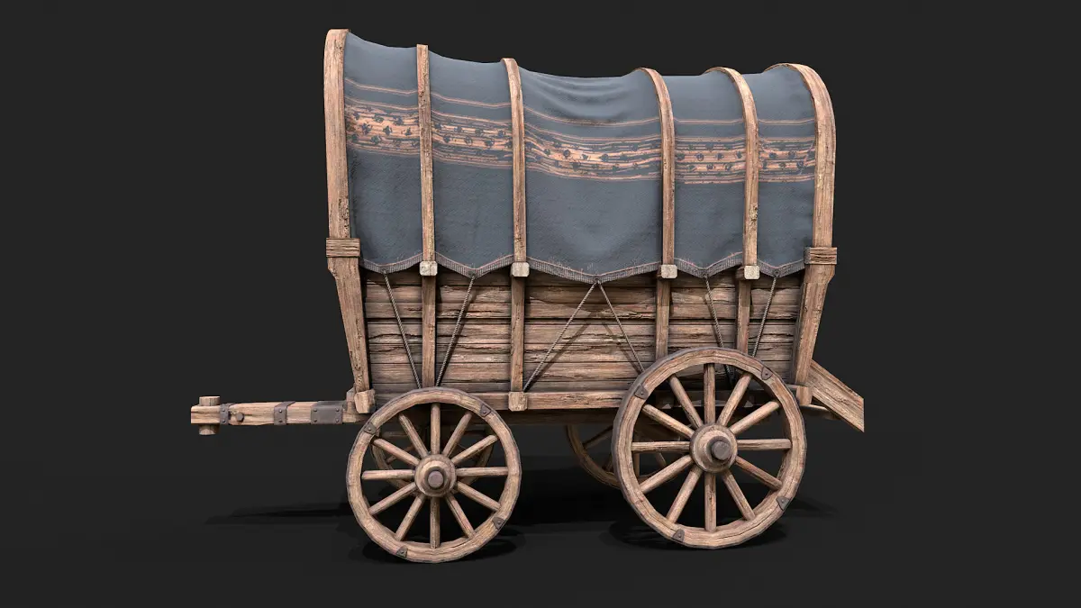 Covered Wooden Wagon Low Poly PBR Low-poly 3D model