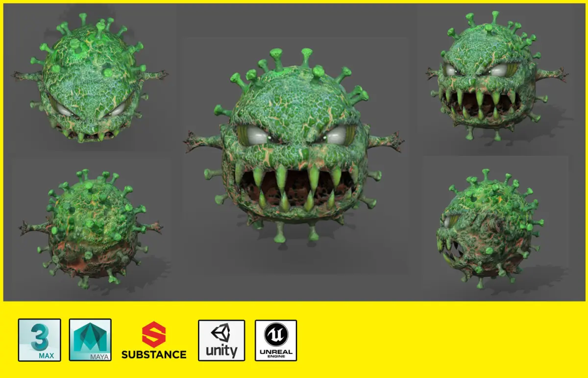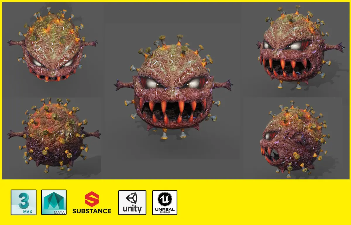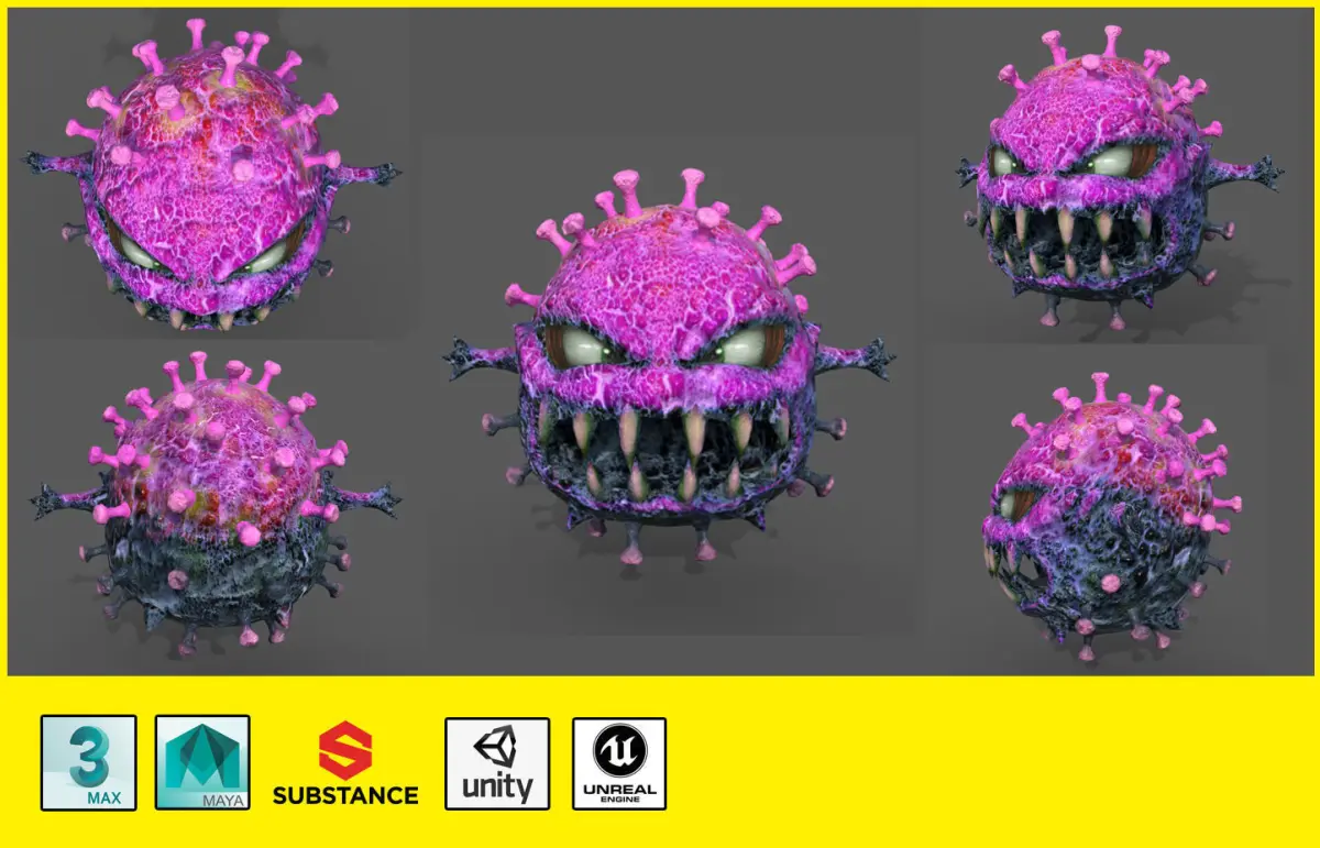 Hi everybody This is a lowpoly Covid monster model for game. ( Can be used for film projects or advertising )