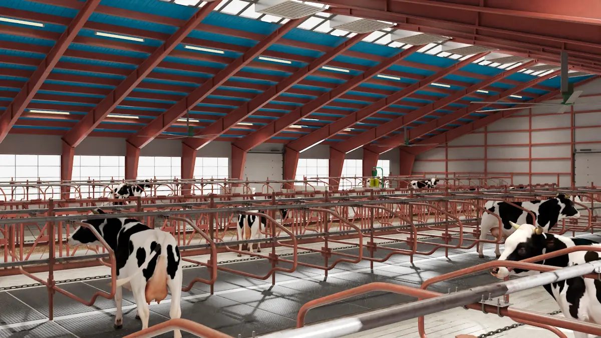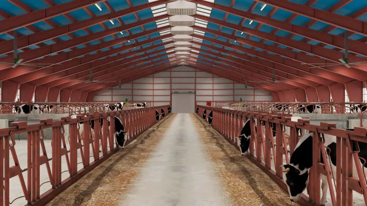 For agricultural facility planning, livestock management, industrial farming, dairy production, sustainable agriculture, cattle rearing, farm structure optimization, rural development projects, modern livestock housing solutions, cattle welfare enhancement, farm equipment advertising, and architectural design portfolios in agribusiness industries.