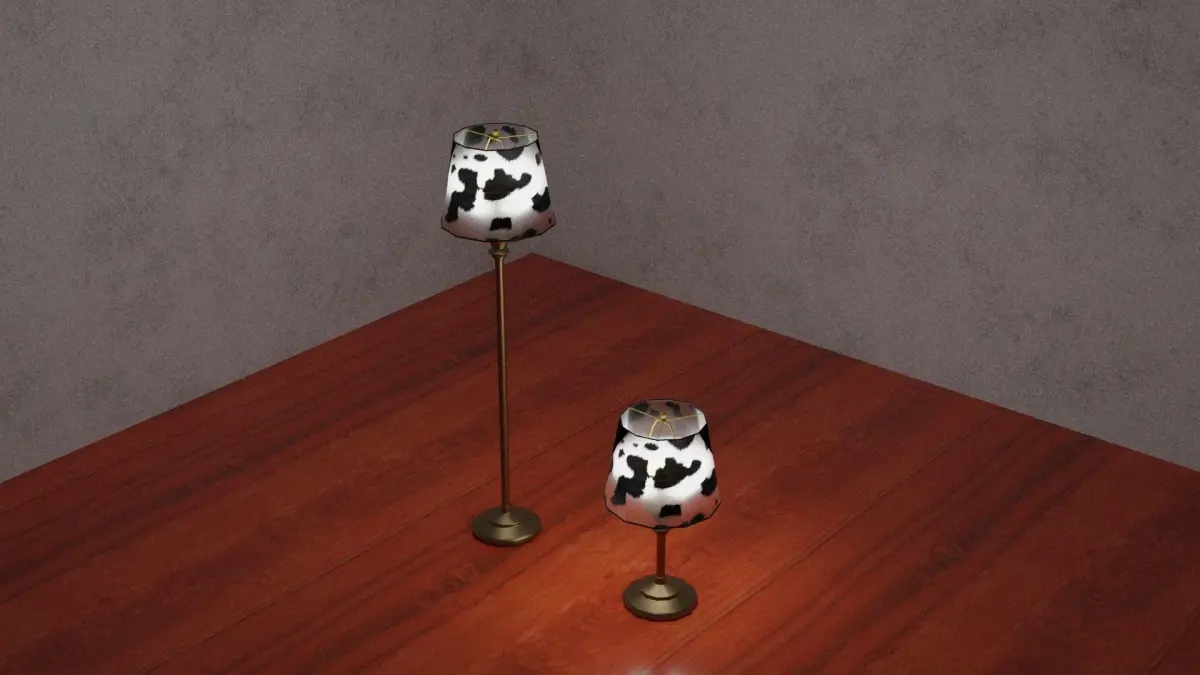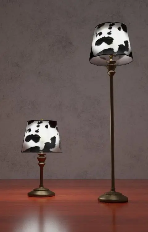 This Cow Hide Lamps come in to Variety. A Floor Model approx 5' tall and a table Model approx 2.5' tall. Both have independent point lights in them. Decorate your room, living room, or have a custom design with these two models.