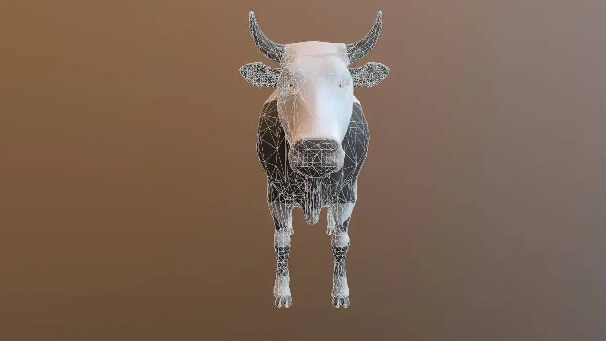 Cow or bull low-poly 3d model ready for Virtual Reality (VR), Augmented Reality (AR), games and other real-time apps.