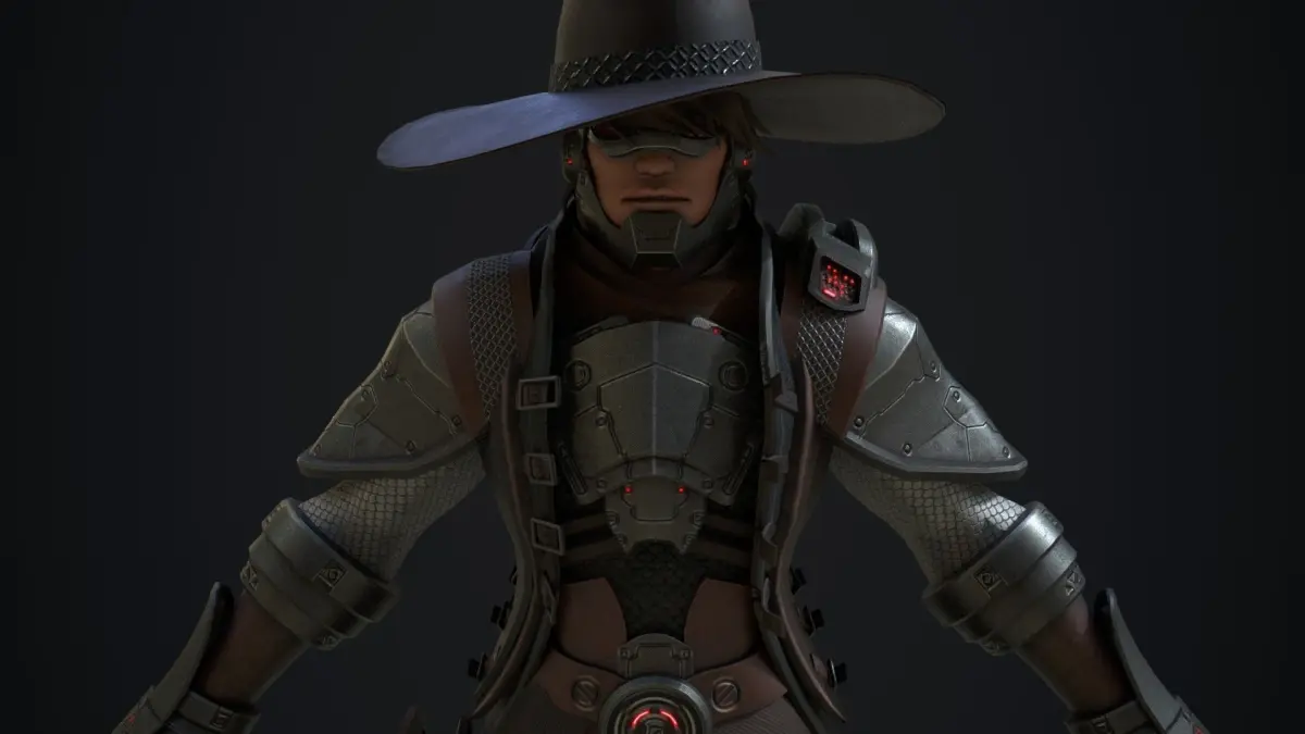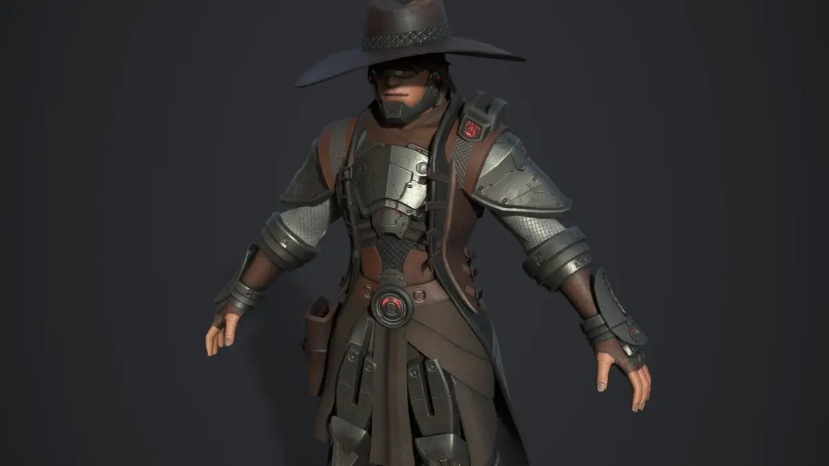 An Original modelIt has 4 different shaders Textures are to be applied to the chest, arms, legs and Cloakwhich should include AO, Base Colour, Roughness, Metallic and Emissive