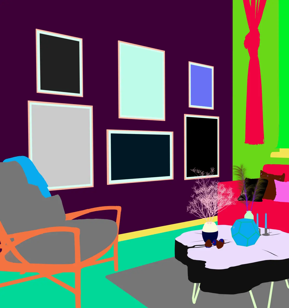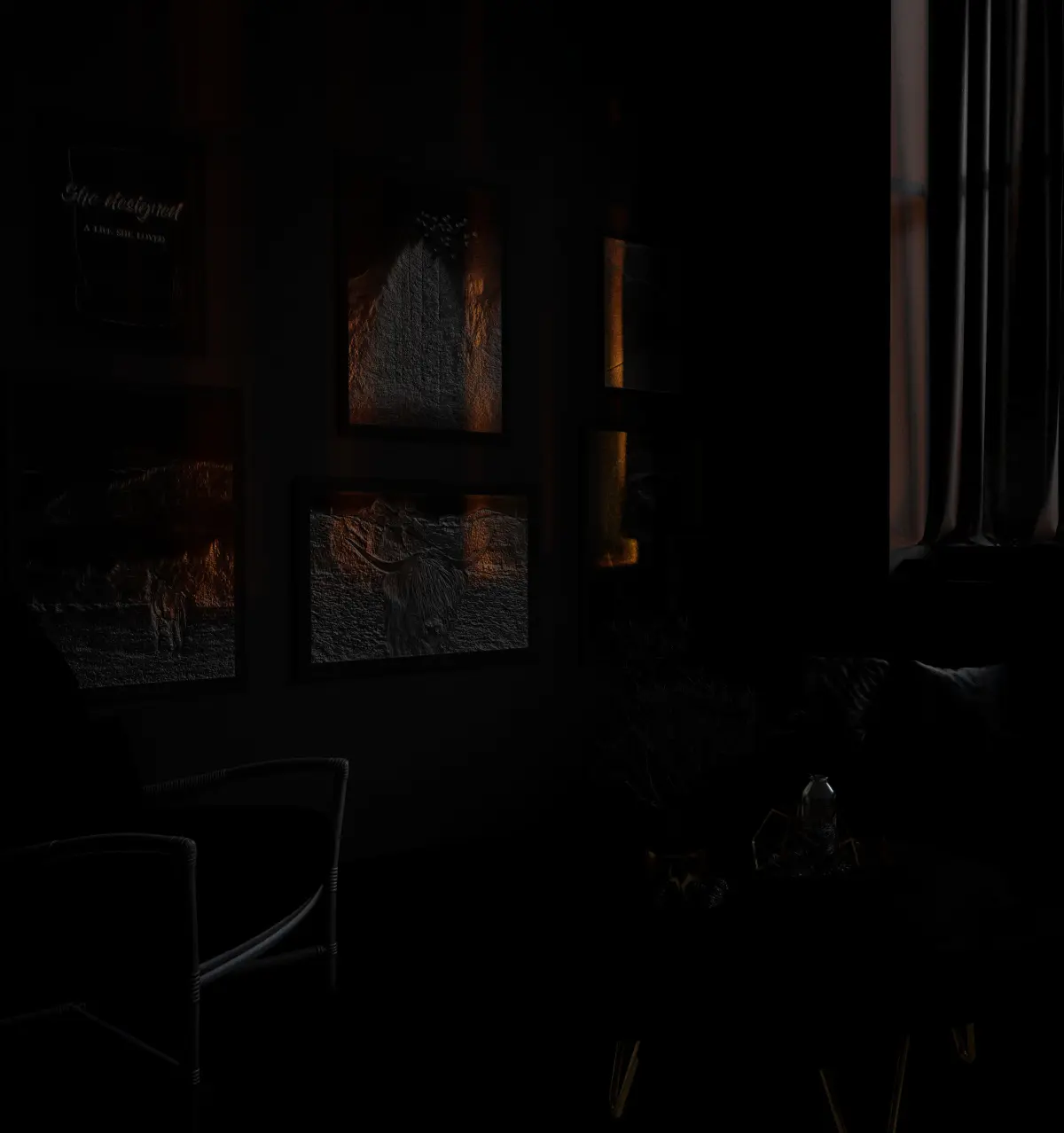 its a Cowboy Living Room with all the elements what is showing in the pictures separated and in one final project, you can feel free to remove or add other elements with this scene everything is ready in the final project with light settings just download it and add the elements what u want from the scene or remove what u don't want and click render it will give you the same final results from the shared picture.