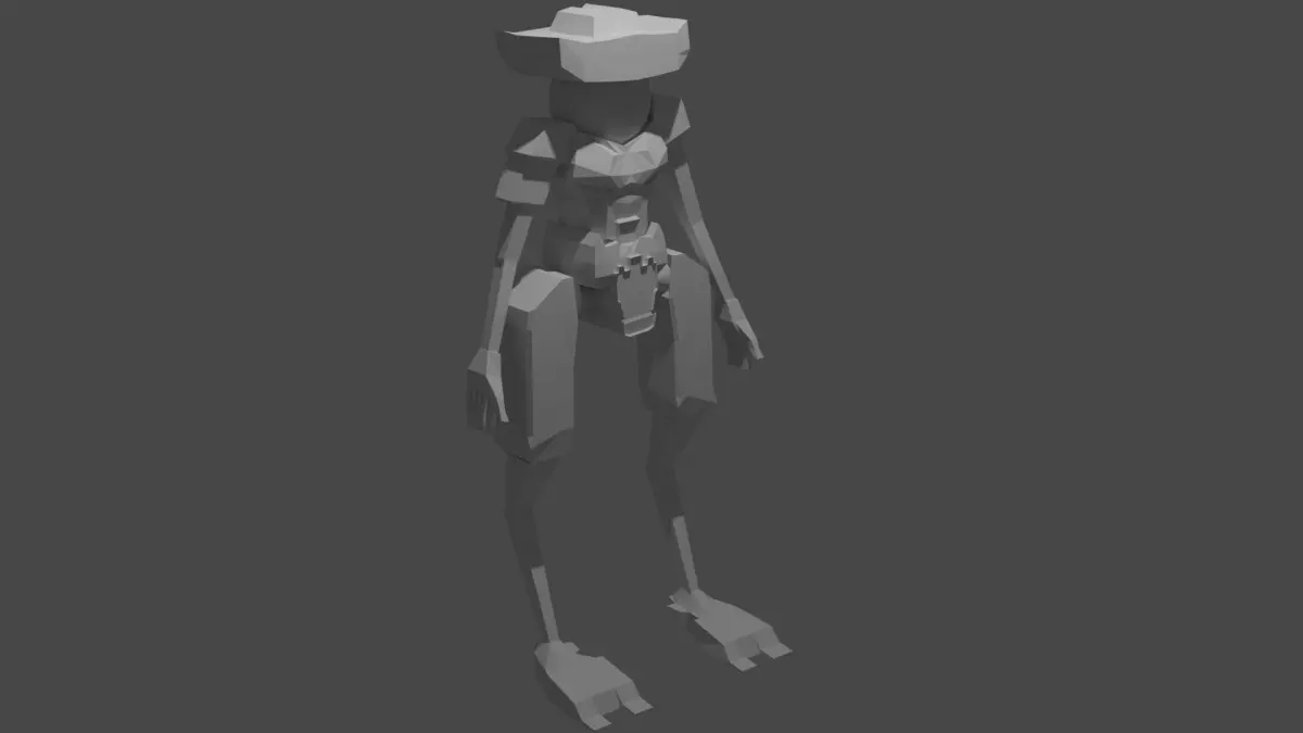 This is the 3d low poly version of my cowboy mecha/robot/cyborg painting that i did a while ago , the elements are not binded ,like the cubes or the cilinders can be moved separately.
