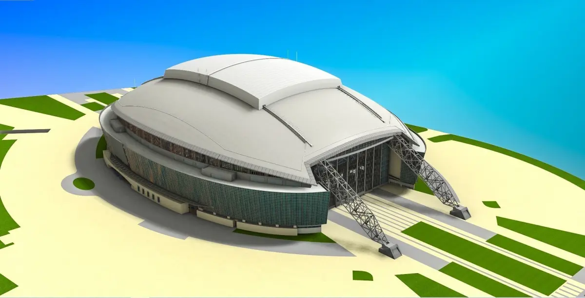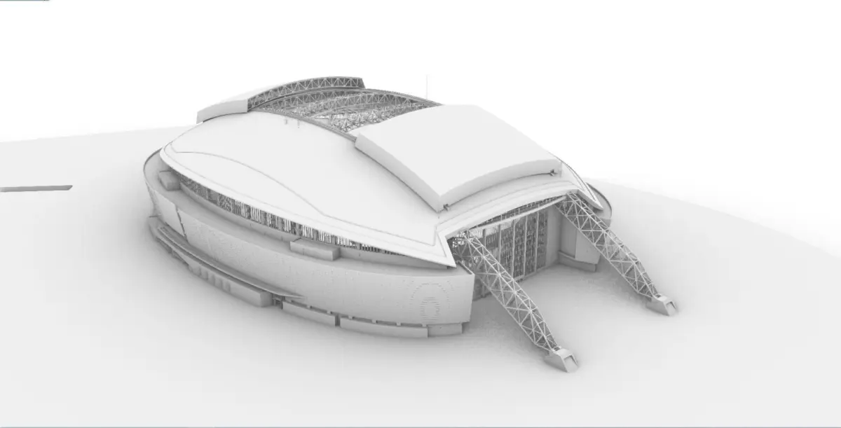 The retractable roof is provided in two versions: Opened Style and Closed style and can be imported from the specific folder of each file format.The field is also provided in two versions : NFL Field and Soccer Field and can be imported from the specific folder of each file format.Due to the large number of polygons and because of its complexity, the **.3ds* and **.fbx* file formats of the 3d model are divided in 8 parts each:
