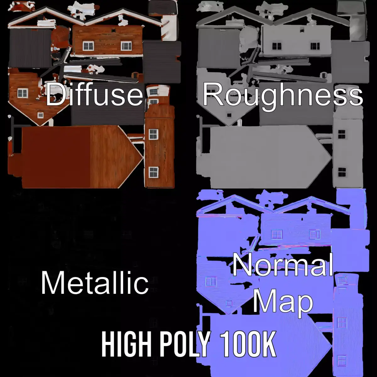The model's textures are PBR, Diffuse, NormalMap, and reflection/roughness/metallic, suitable for any modern rendering engine. All models accurately unwrapped and have no overlapping UV. All textures are 4096*4096 in size.