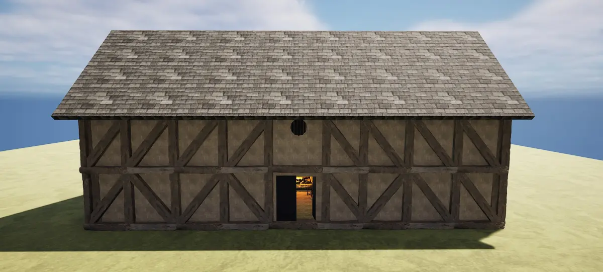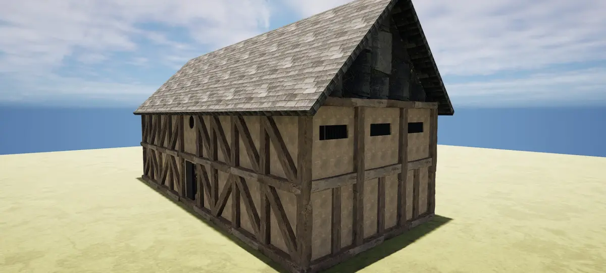 There is a highly detailed and decorated Cozy Fantasy Medieval Tavern Exterior and Interior.