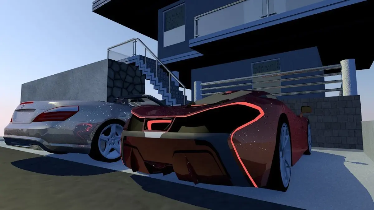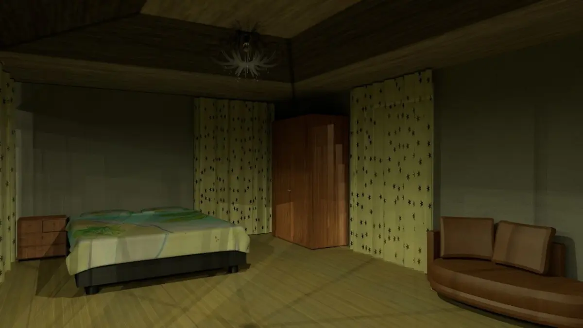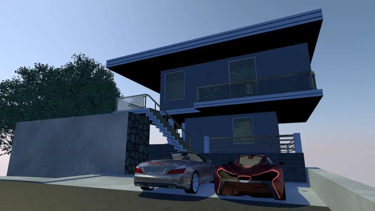 Here is a little cozy house I made. It has two rooms: a living room on the ground floor and a bed room on the upper floor, it has different furniture inside like:-double bed-chest-wardrobe-bedroom sofa-living room sofa set-tv-table-dinning room with table and chairs-book shelfoutside it has a pool with pool side table and chairs plus two sun lounger. in the parking it has two cars a mclaren a mercedes benz. it has a road going down the hill with road lights, the garden lights near the tanning area light the frontyard in the night time. the hill is covered of trees and grass. two big chandelliers, lights in the pool, realistic pool water with hot4d plug-ins, trees and grass with forester plug-ins.thats all, I hope you guys like.