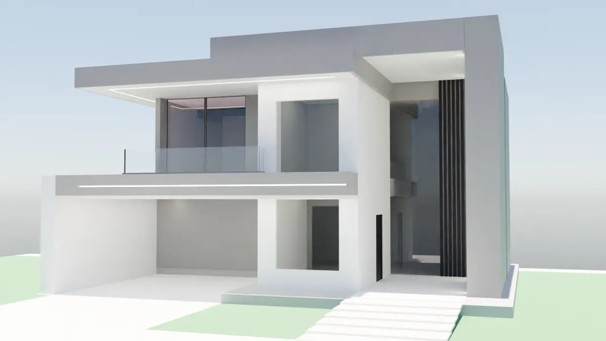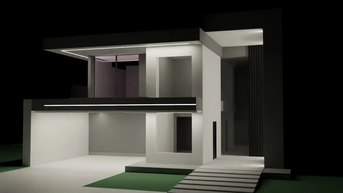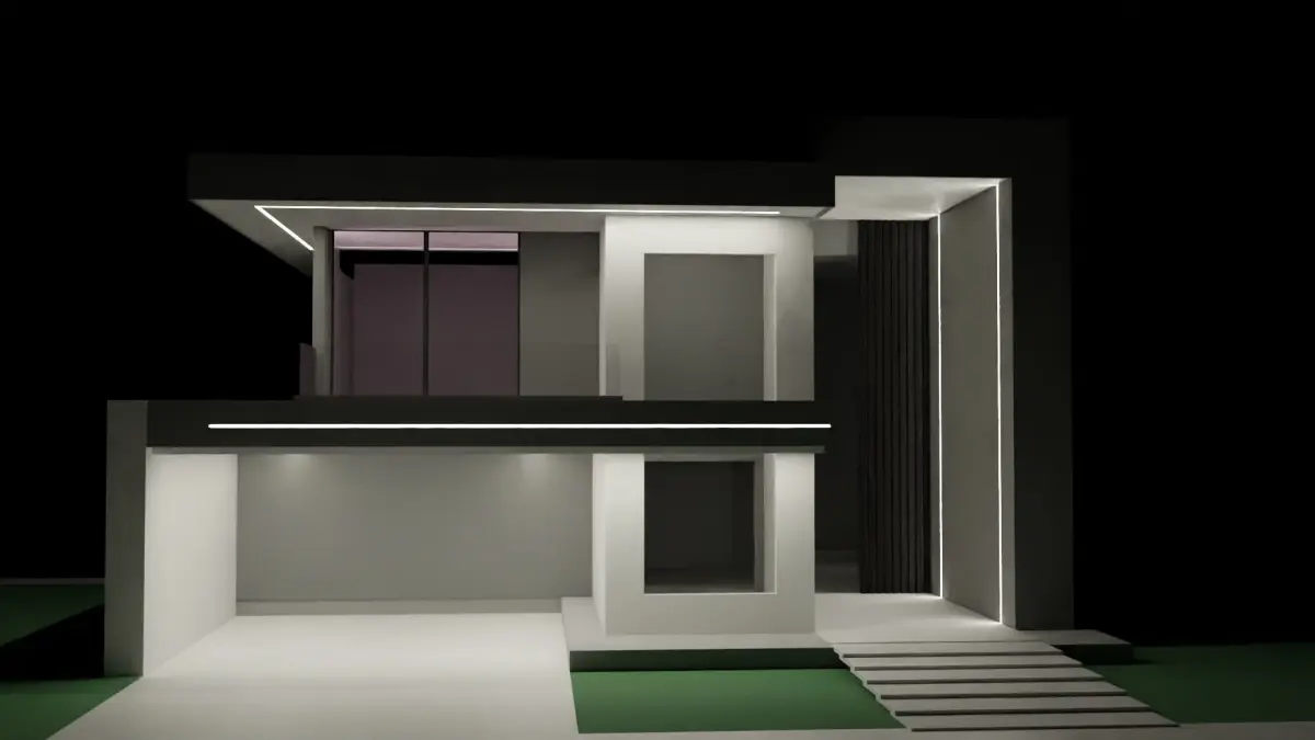 cozy house in high-tech style the house is made in a very minimalist and style, inside made rooms with lighting