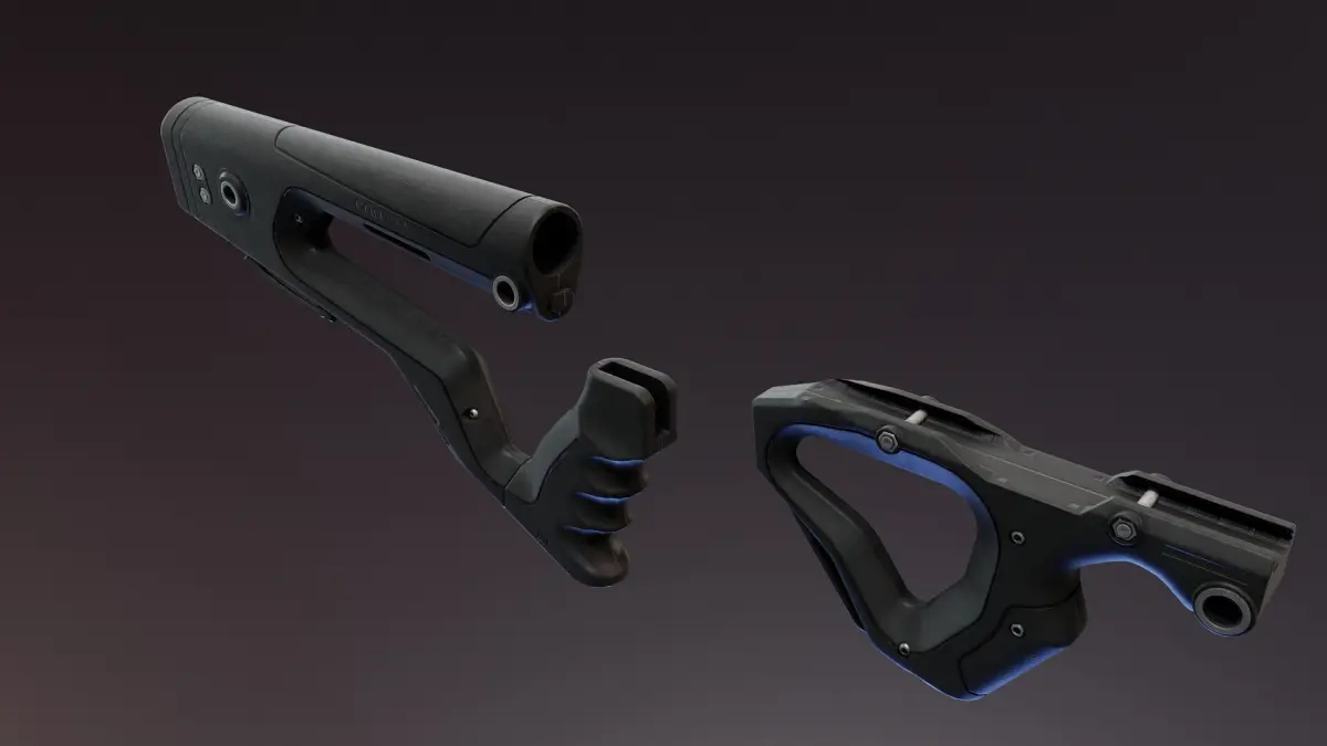 Fancy and futuristic looking buttstock and foregrip for AR rifles. Make your M16 futuristic looking again!