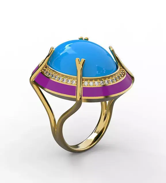 Crab prong oval gems enameled ring 3D print model