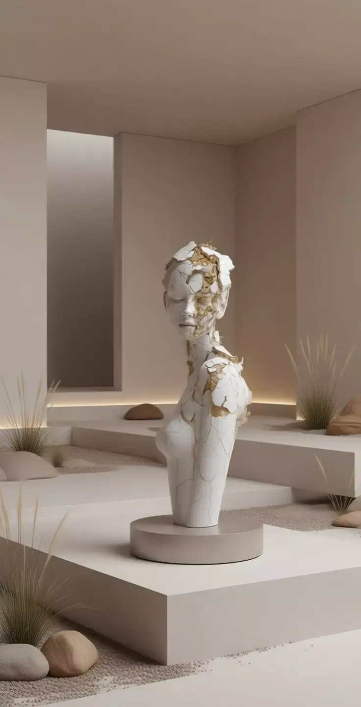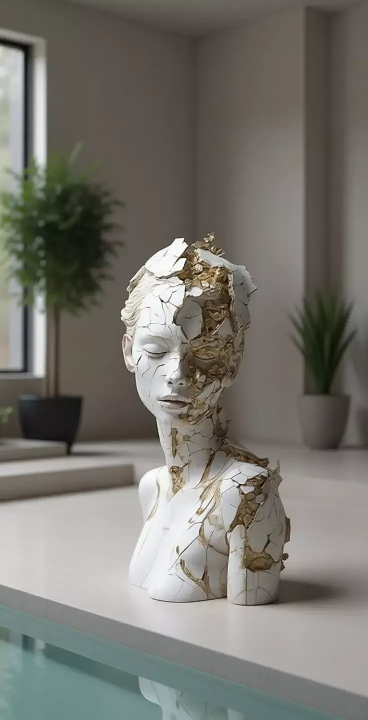 This high-fidelity digital asset blends classical realism with contemporary conceptual art, making it ideal for use in artistic installations, interior design, fashion photography, or as a symbolic element in storytelling focused on identity, vulnerability, and emotional recovery. It can also serve as a reference for artists, designers, or animators exploring themes of fragility, rebirth, and the value of scars.