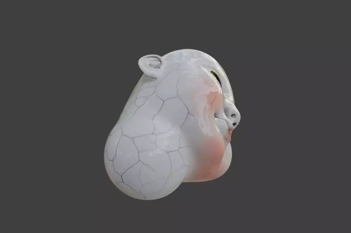 The model is ideal for horror, thriller, dark fantasy, and psychological narrative projects, where atmosphere and detail are critical. The cracked porcelain surface is carefully sculpted to reflect natural fracture patterns commonly found in aged ceramic objects, enhancing authenticity and realism. Soft blush tones on the cheeks and lips contrast with the cold, fractured surface, creating a visually compelling and emotionally charged subject.