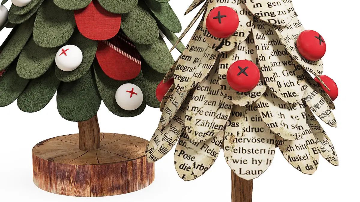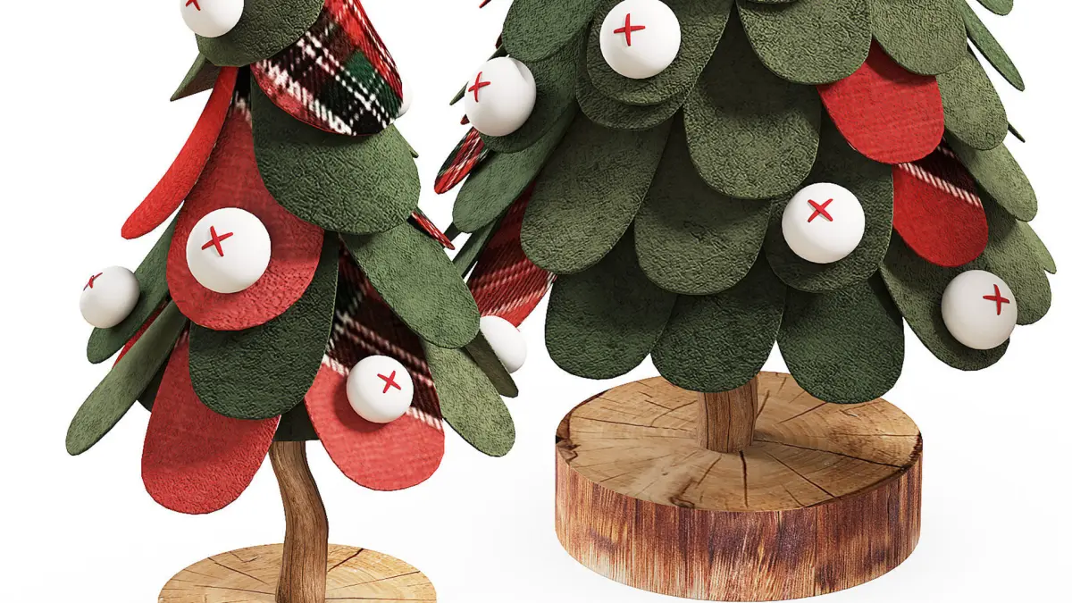 Set of three Christmas trees made of felt, paper, wood and beads.An excellent decor for the New Year, Christmas, a costume for a shop window, a store with a holiday theme, it will add a cozy interior to a nursery or living room.