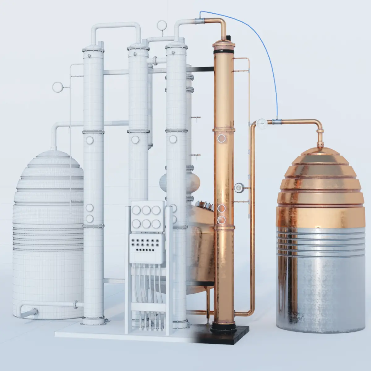 This model is an abstract representation of a small scale Gin distiller mainly for indoor bars and restaurants.The model was made in corona render the converted to Vray.Corona and Vray Files are includedFBX and OBJ files are included
