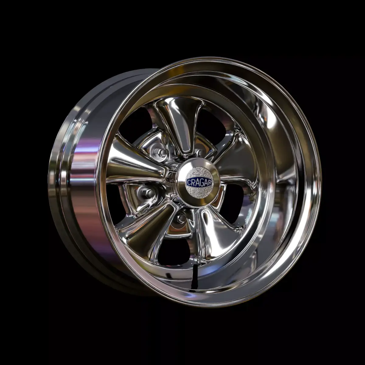The wheels were modelled in Blender 4.5.2. The wheels are based off an original 15 Inch set and were modelled with the help of a 3D scan. The reason I say original is due to the fact that Cragar has updated their S/S wheels at some point with the new mold shape they made, which in return changed the spoke shape alot.