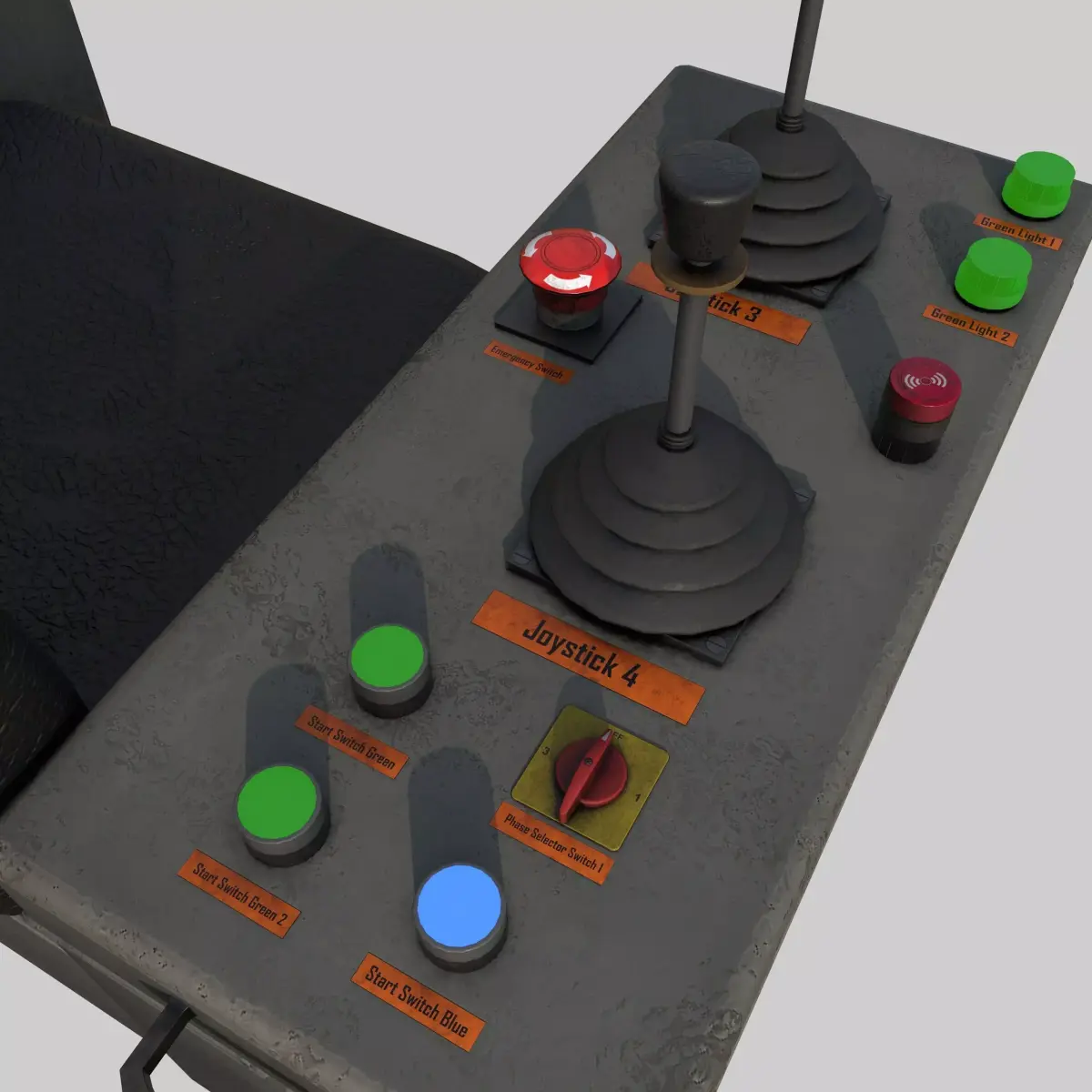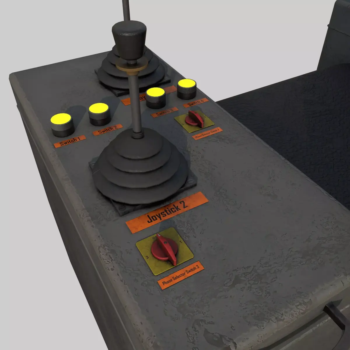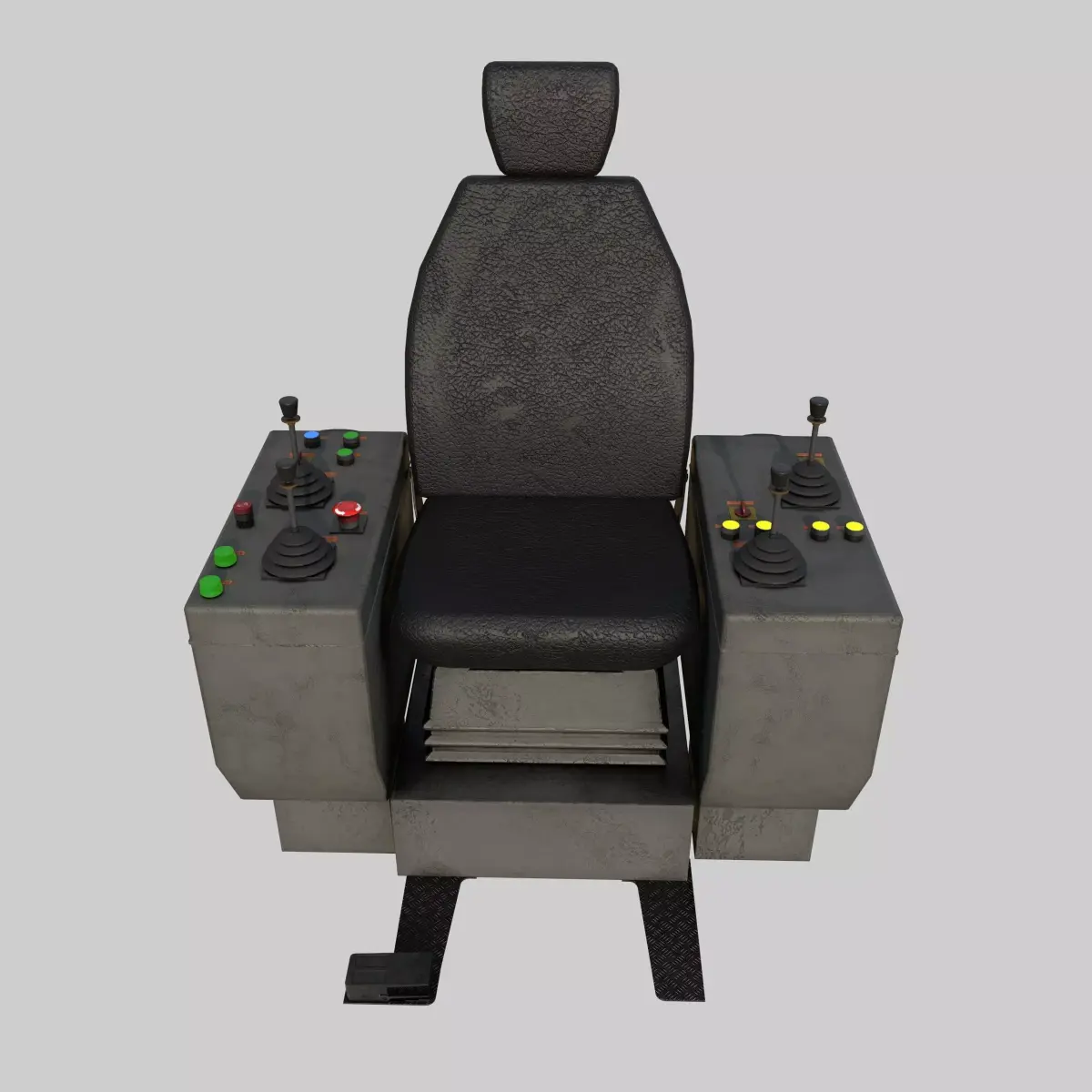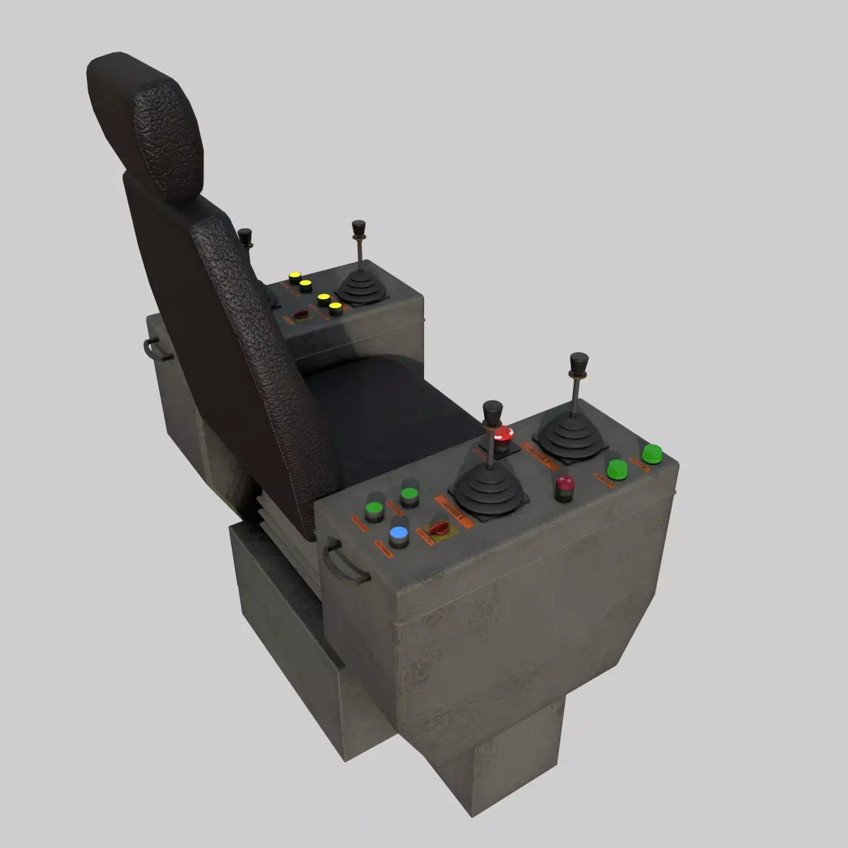A high-quality 3D model of a Crane Operator Console, accurately designed for use in industrial cranes, simulators, and heavy equipment control systems. The model features a detailed operator seat, dual joystick controls, and realistic button layouts, replicating the authentic setup used in crane cabins and machinery control environments.