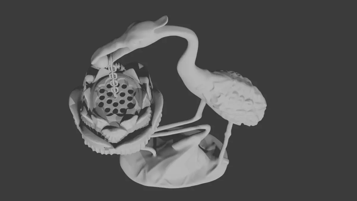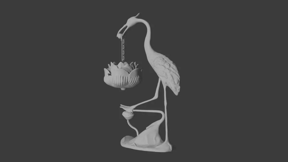 A decorative 3D model of a crane-shaped reverse flow incense burner, inspired by a real product. This model is free to download and use for non-commercial purposes. Great for interior scenes, decor renders, or stylized projects. Modeled from scratch in Blender. (Textures not included.)