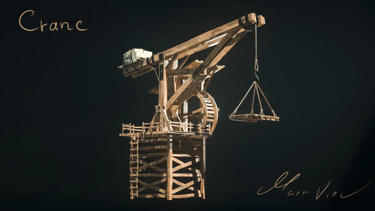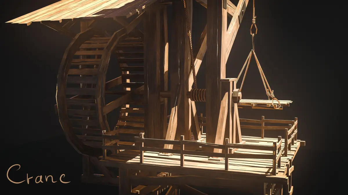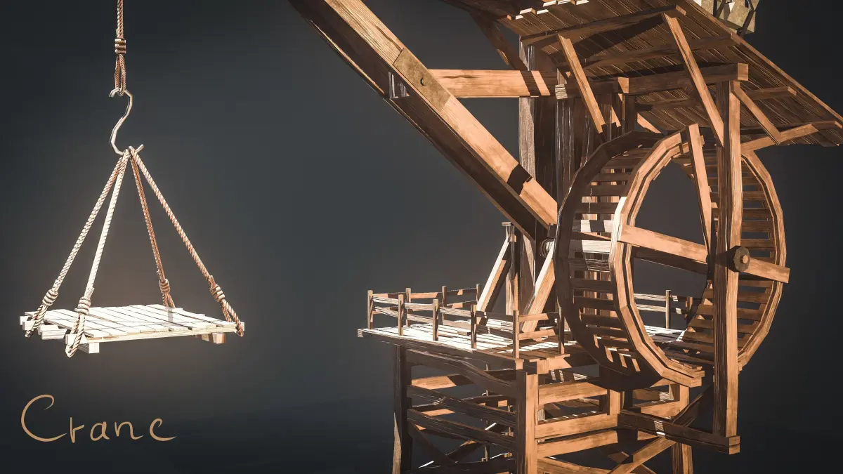 Medieval Crane was created as a background (or main) props for medieval environment. General concept is based on real propotupe of medieval cranes. Mostly these type of cranes is used in ports for loading and unloading of large vessels/cargo ships (or also military).