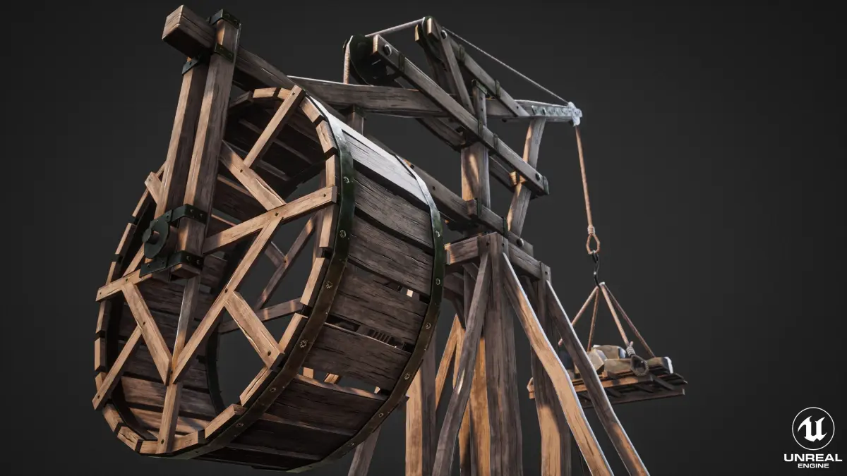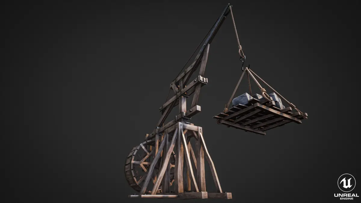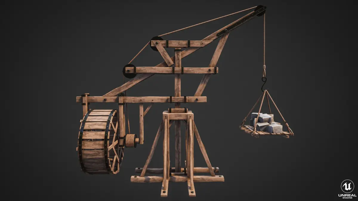 Medieval Crane was created as a background (or main) props for medieval environment. General concept is based on real propotupe of medieval cranes. Mostly these type of cranes is used in ports for loading and unloading of large vessels/cargo ships (or also military).