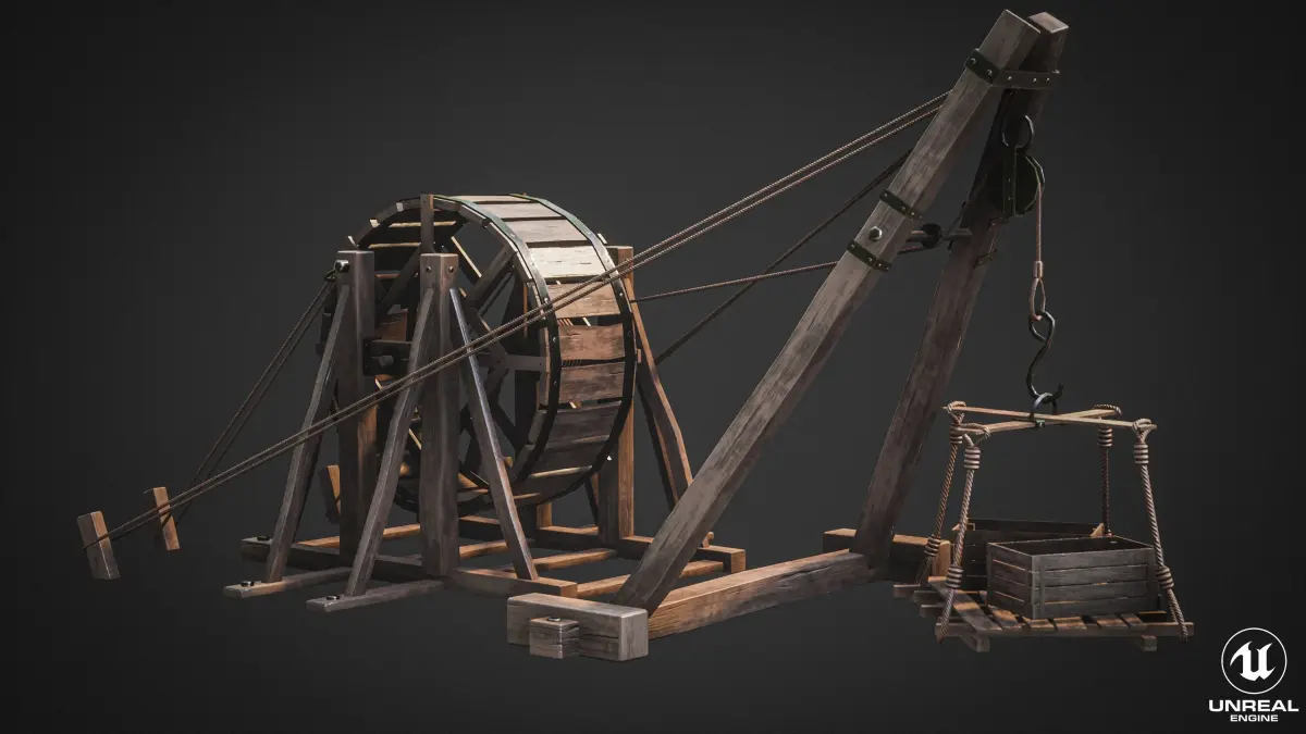 Medieval Crane was created as a background (or main) props for medieval environment. General concept is based on real propotupe of medieval cranes. Mostly these type of cranes is used in ports for loading and unloading of large vessels/cargo ships (or also military).