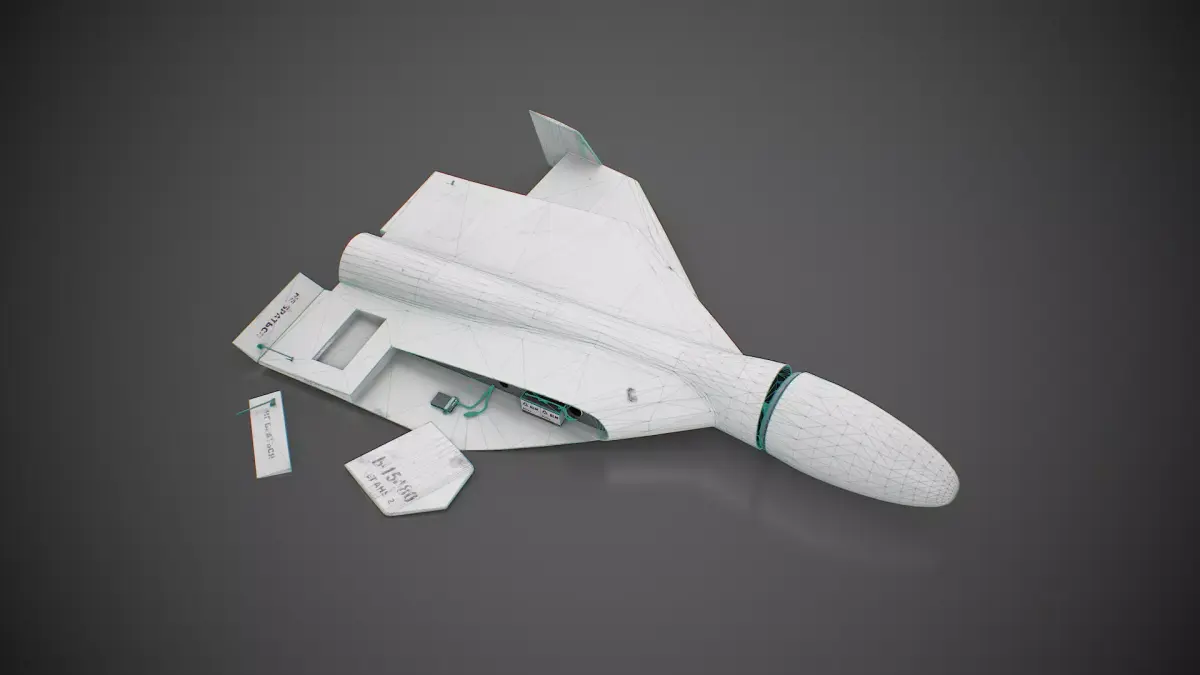 This is a game ready, realistic 3d low poly model of a crashed Shahed-136 kamikaze drone, with PBR textures. Originally created with Blender