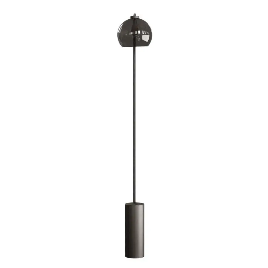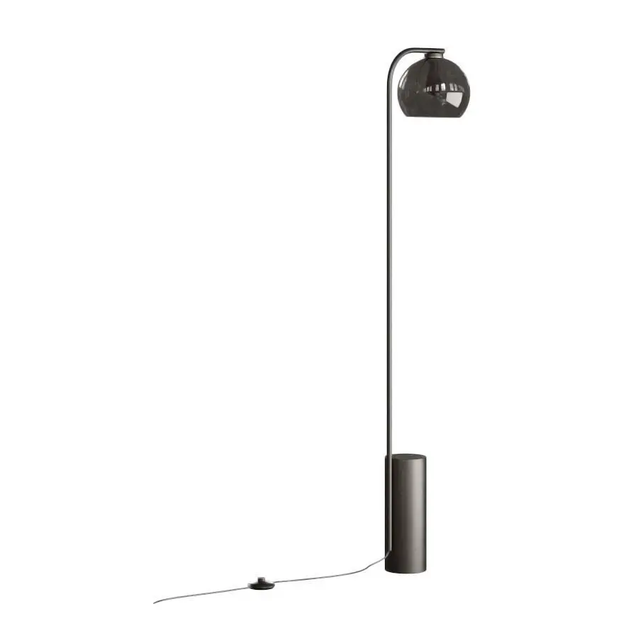 Arren Black Floor Lamp with Clear Round Shade 9Wx56HDesigned by Mark Daniel of Slate DesignIron base with black finishClear glass shade12' black fabric cord with rocker switch9W LED bulb included (accommodates 1 bulb up to 60W incandescent or energy-efficient equivalent)E26 bulb typeDust with soft, dry clothImported