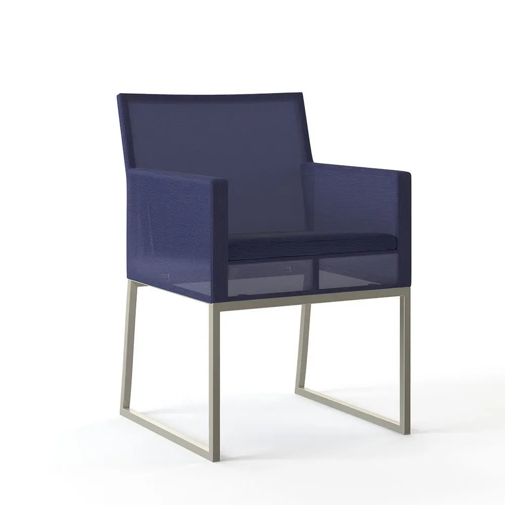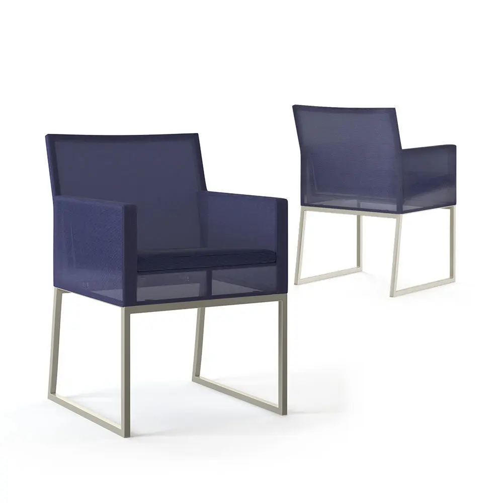 Dune collection is truly a modern indoor room that lives outdoors. The dining chair's outdoor-grade stainless steel frame is covered in synthetic mesh for a sleek, urban look