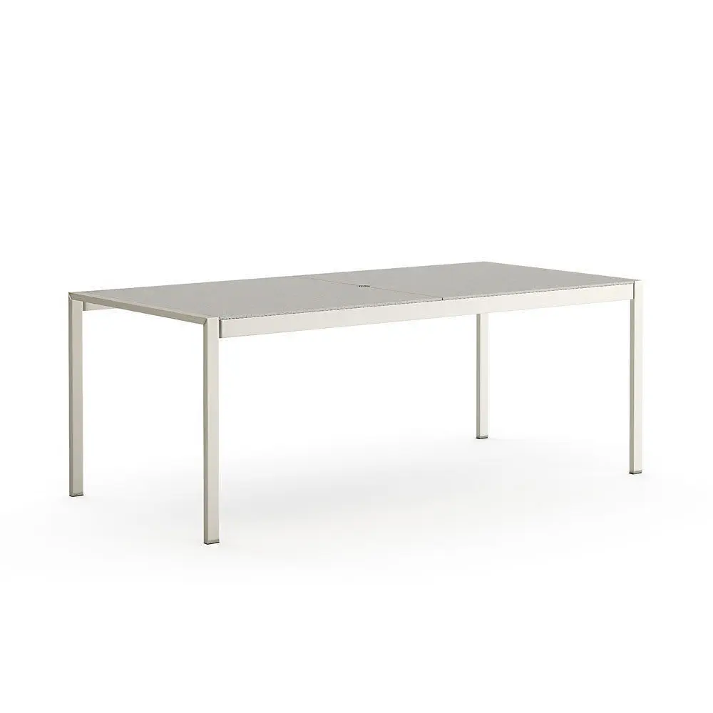 -Dune Rectangular Dining Table:https://www.crateandbarrel.com/dune-rectangular-dining-table-with-pebbled-glass/s546316 W-77D-36H-29,5"