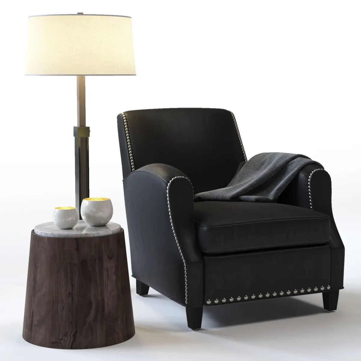 High quality model of Crate&Barrel Metropole Leather Chair, Metropole Ottoman, Alpine Accent Table, Denley Nickel Floor Lamp. Model created in 3DsMax 2014 and converted for 3dsMax 2011, rendered with Vray 3.2.Materials set up for Vray 3.0 and Vray 1.5. Model has proper real world scale. Materials, objects and textures has unique and meaningful names.Textures paths set to relative.