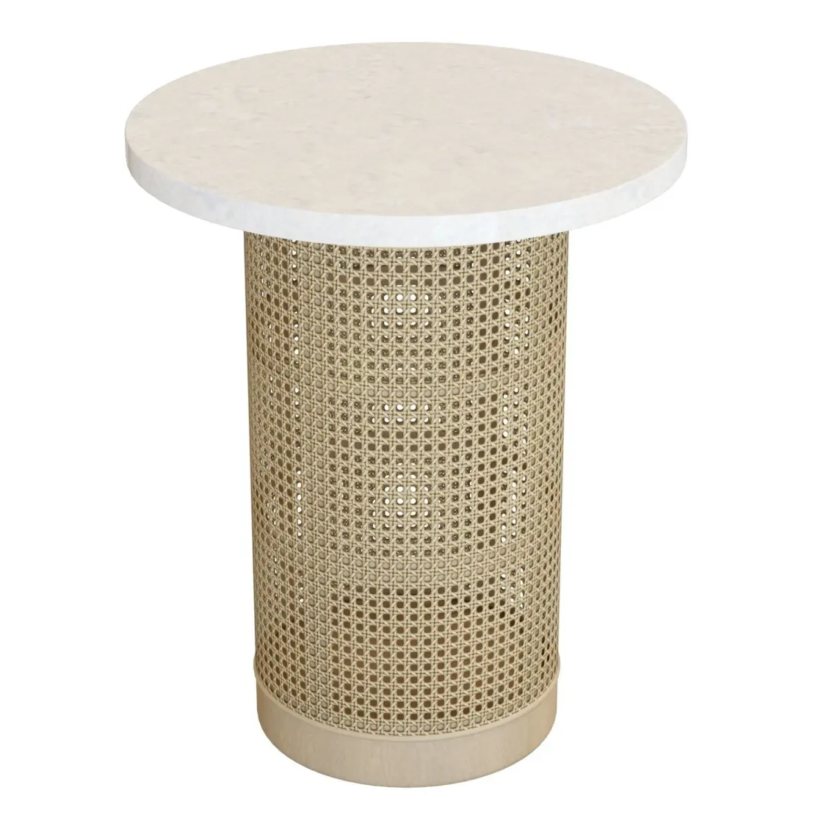 Original: https://www.crateandbarrel.com/vernet-travertine-cane-round-end-table/s563124