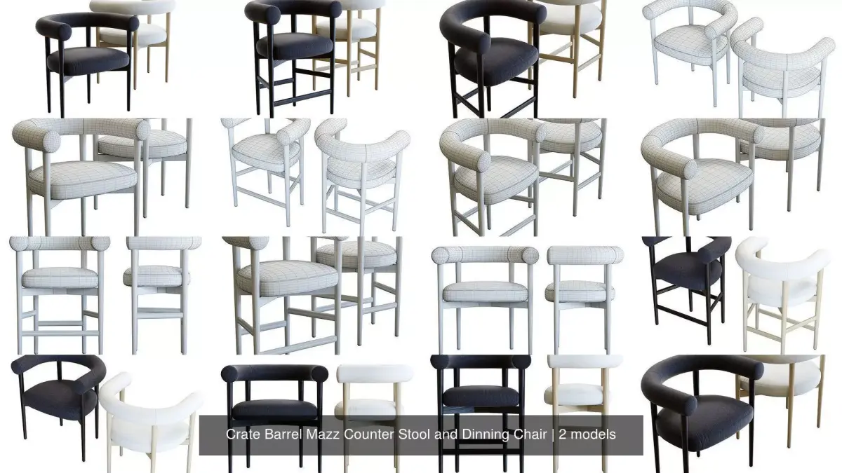 High-quality 3d model of a Crate and Barrel Mazz Curved Counter Stool and Dining chair by Leanne Ford.2 colors