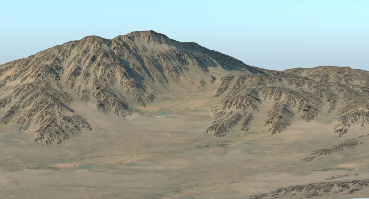 A DETAILED 3D MODEL SCENE OF A CRATER;