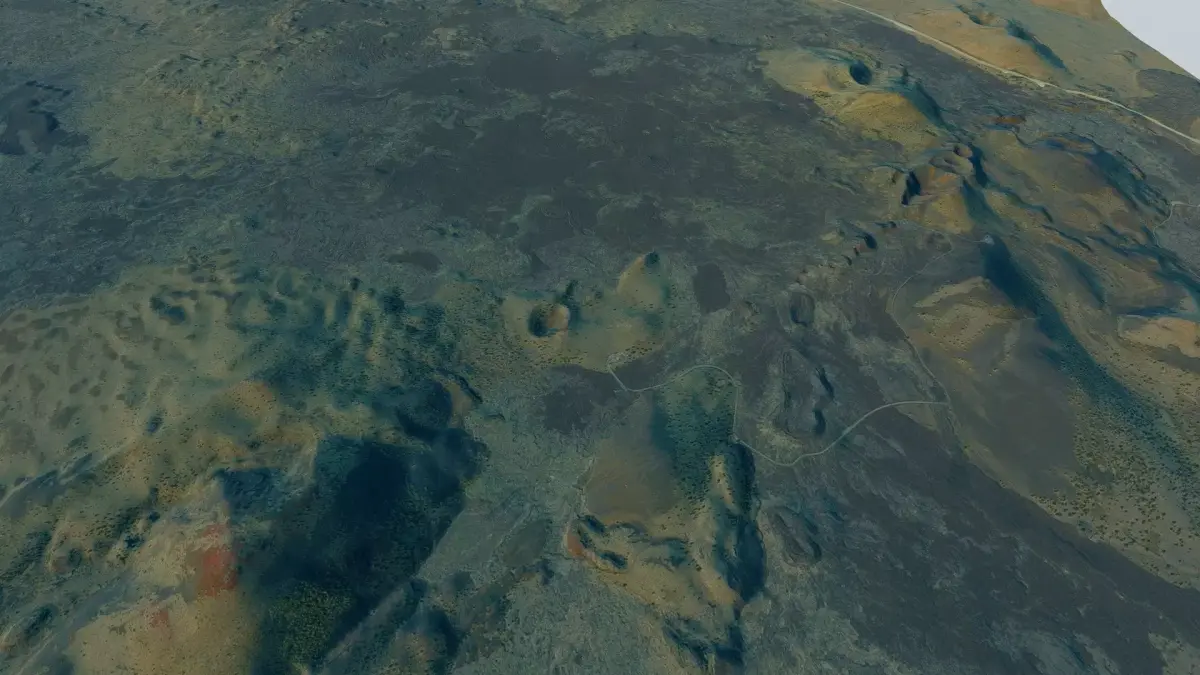 The Craters of the Moon National Monument and Preserve is a vast, otherworldly volcanic landscape located on the Snake River Plain in Idaho.Today, Craters of the Moon National Monument and Preserve encompasses over 1,100 square miles and is jointly managed by the National Park Service (NPS) and the Bureau of Land Management (BLM). It offers visitors opportunities for hiking, camping (at the Lava Flow Campground), caving (a free permit is required), and exploring the 7-mile scenic Loop Road. The Monument is a popular destination for its unique geology, and has even served as a training ground for NASA astronauts preparing for lunar missions. While the volcanic activity is currently dormant, the region is considered a potentially active volcanic area. It has also been designated an International Dark Sky Park, offering exceptional stargazing.This is the highly detailed terrain model of the area consisting high resolution image and terrain data. It covers most parts of the preserved area.