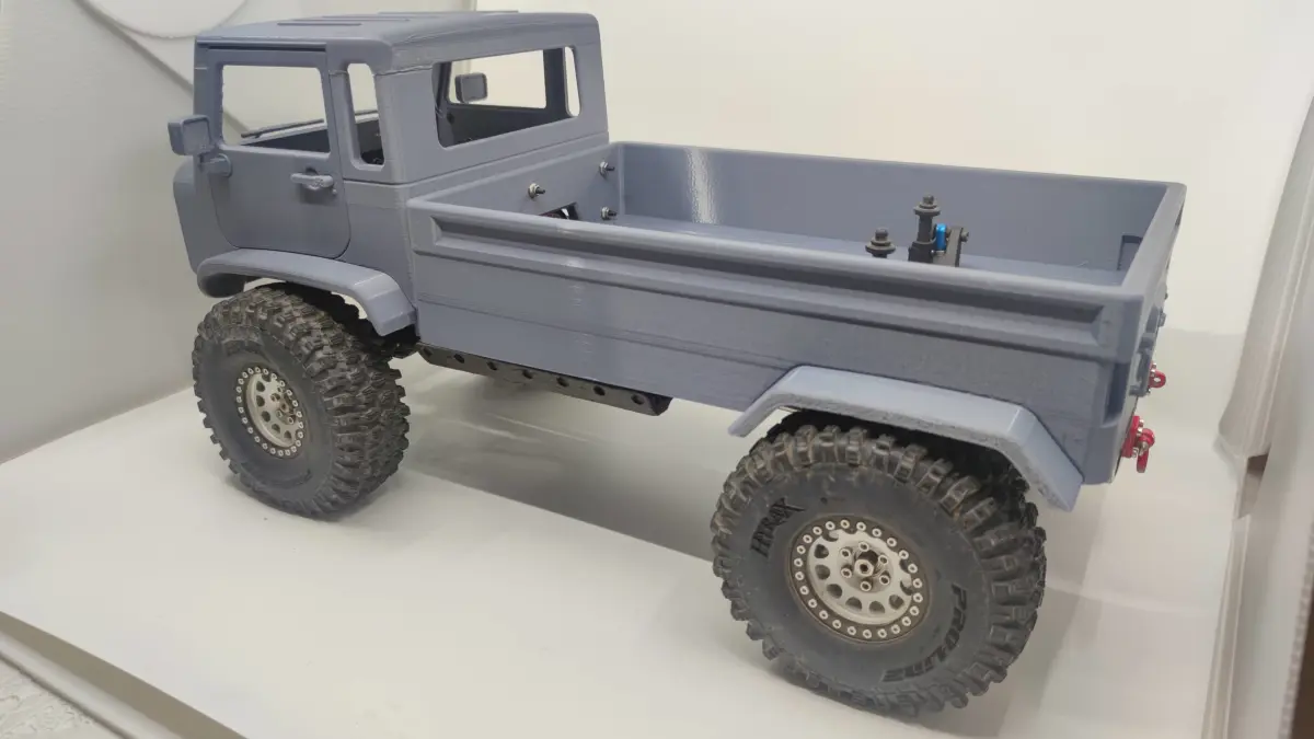 With high amounts of detail and shaping, the body is made to look as realistic as possible, and is designed for the standard 313mm or 12.3in wheelbase of 1/10 scale RC crawlers. However it can be printed without the bed for custom wheelbases and builds. Please keep in mind an FDM printer with a build volume of at the very least 185*185*145 is required.
