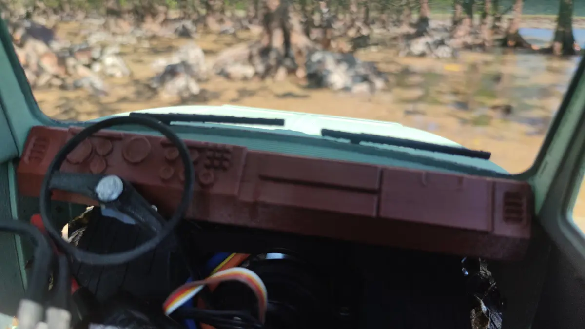 To enhance its off-road abilities further, custom “rock shield” chassis mounts are included. The purpose is to make the under cab as slippery as possible with the angled surfaces so the truck will slide along the rocks instead of getting caught. There’s also a normal version of the chassis mount that does not have the “rock shield” design.
