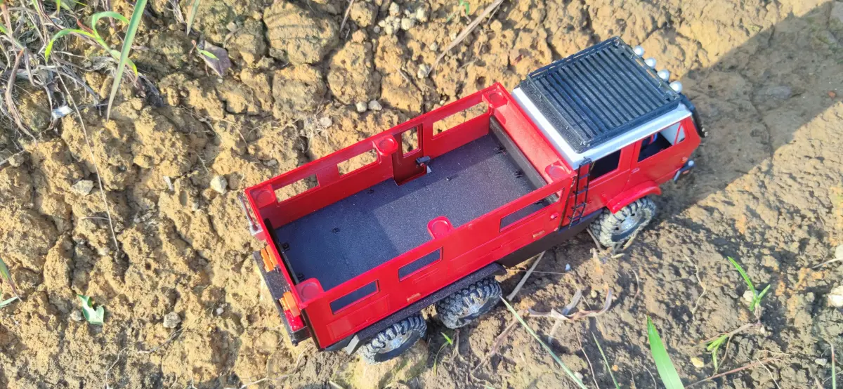 The expedition suite is designed for the stock geometry of the CR18P 6x6m with tyre to tyre width being 135mm, wheelbase of 165mm from front to middle axle, and 240mm from front to rear axle, using 60mm dia. tyres.