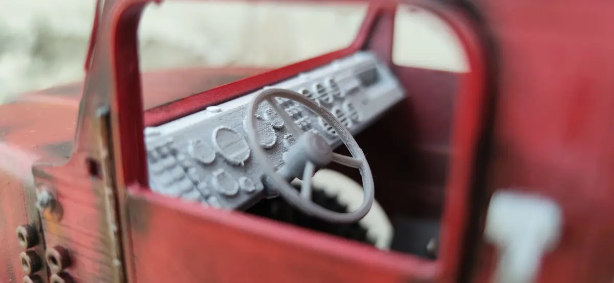 Designed features and details:Functional light buckets2 styles of grillesHeavy duty style wheelsDetailed dashboard with steering wheelWipersMock windshield hingesMock door hingesDoor handlesCab handlesMock cab boltsand more