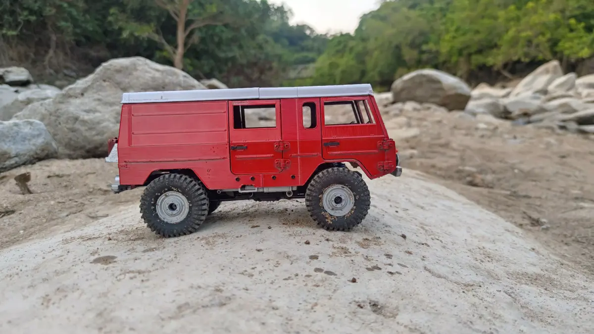 Designed to be used with a stock TRX4M chassis, the ideal wheelbase is the stock 155mm, paired with the stock tyre height of 62mm and stock width of 124mm.