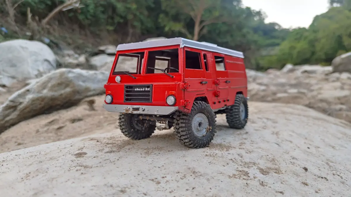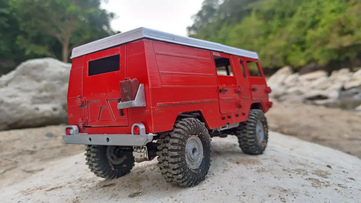 Some of the features and details included:Hinged doors for easy electronics and battery accessFunctional light bucketsExhaust muffler and pipesBog 406 style wheelsLots of small details included; inner and outer door handles, wipers, radiator…etc.and more…