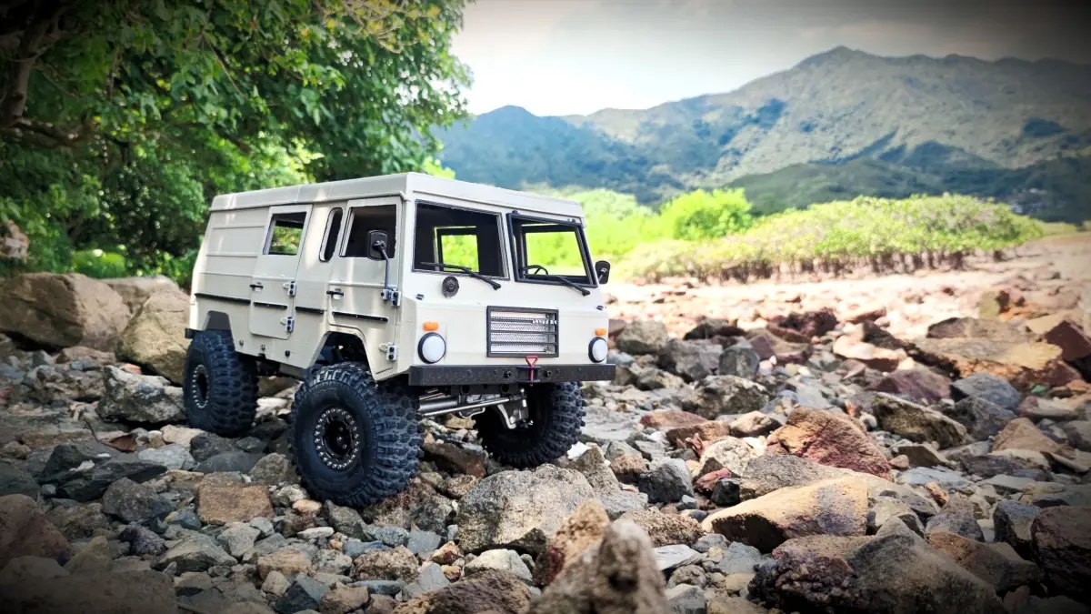 It’s designed specifically to fit on SCX10 ii, SCX10 iii, VS4-10 Pro, and TRX4 chassis with a standard short wheelbase of 290mm, outer tyre to tyre width of 230mm and maximum tyre height of 110mm.