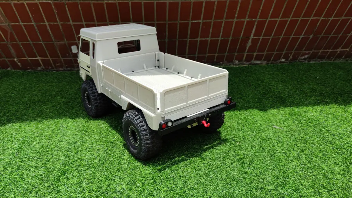 The V306 4x4 Flatbed is designed specifically for the V303 Front Cab (sold separately), made to fit on the VS4-10 Pro, SCX10 iii, and TRX4 chassis with the provided mounts.