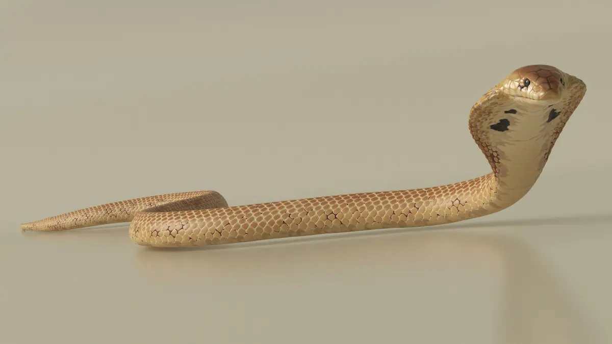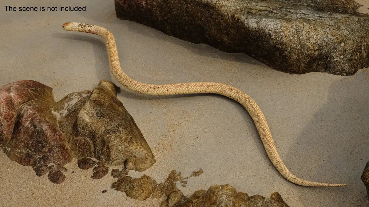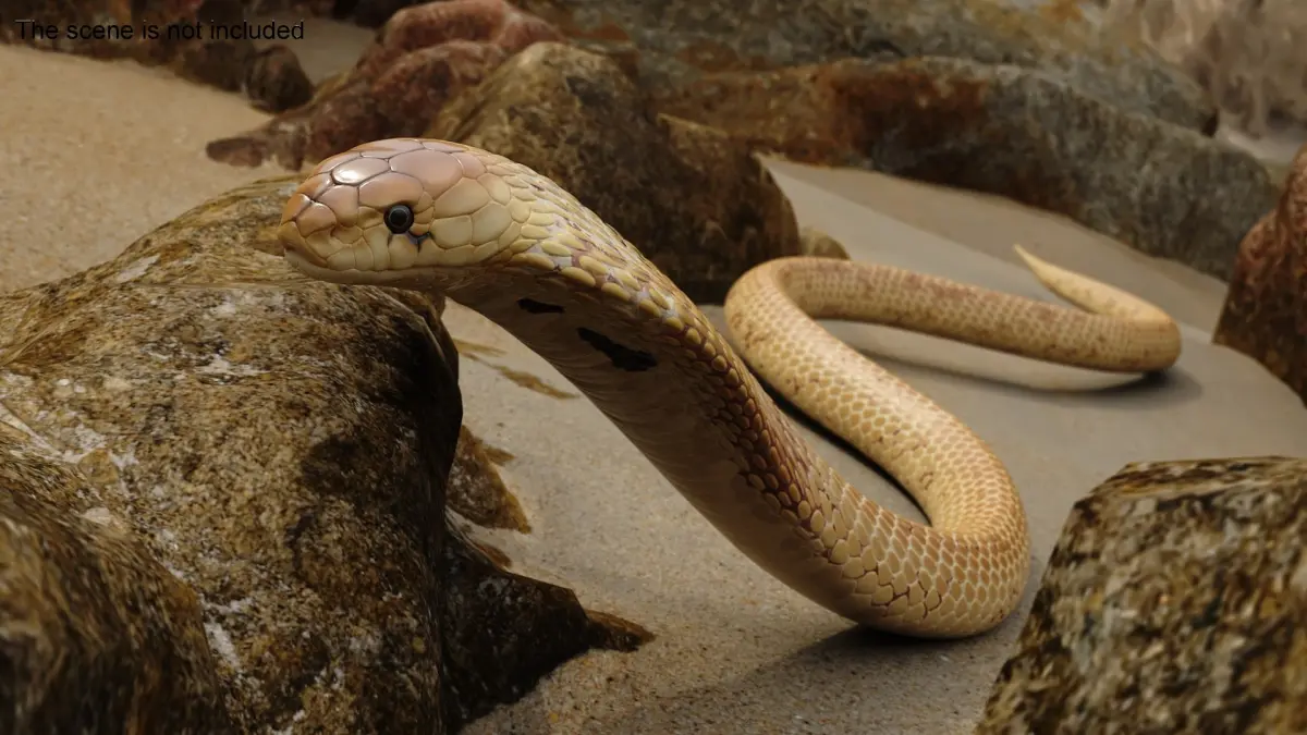 Crawling Light Skin Cobra Animated Rigged is a three-dimensional model of Naja Cobra Snake (Naja naja), that is a venomous snake species known for its iconic hood display and potent neurotoxic venom.