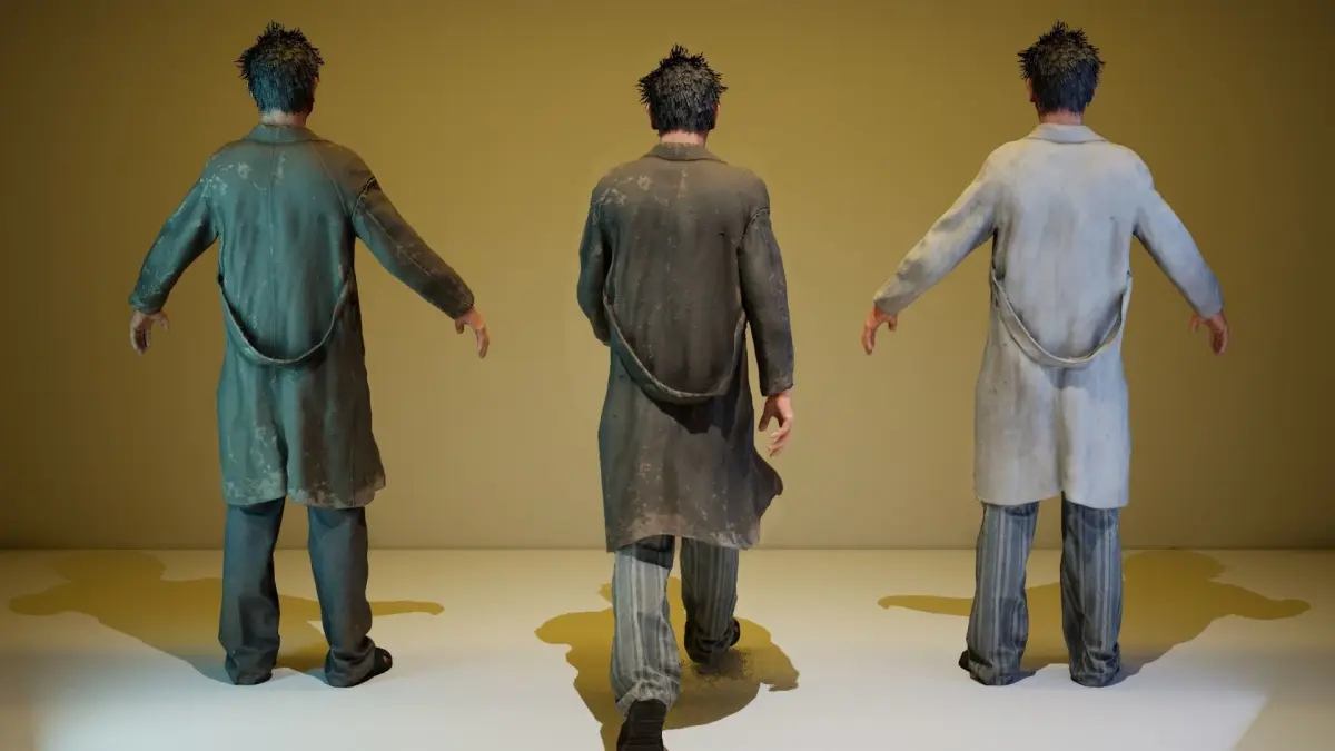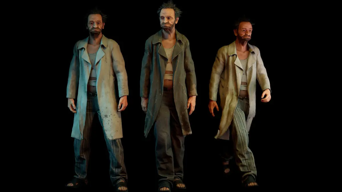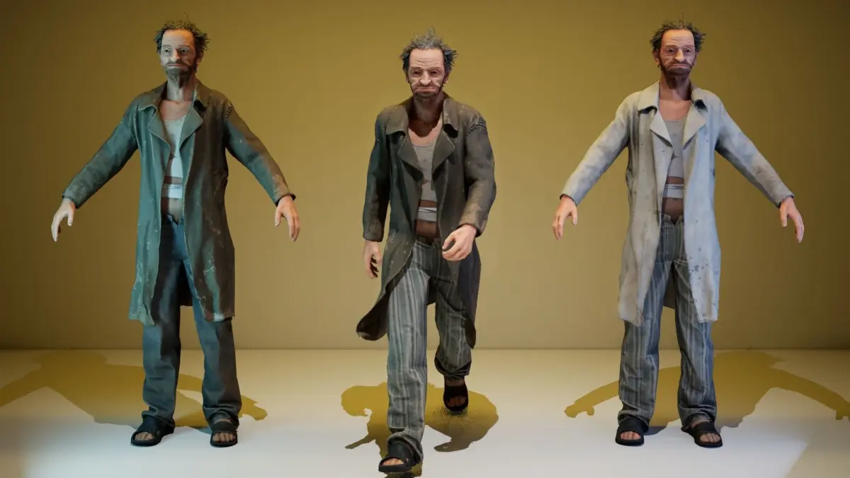 Unity package :Two color variations of the body (street and asylum).Coat is simulated by cloth component.Face of the character is rigged by 52 ARKit compatible blendshapes.Humanoid avatar compatible rig is used.Perfectly looped idle, walk and crazy talk animations.Polycount - 24030 tris, 15340 vertsTwo 4096x4096 textures of Albedo, Normal, AO and MetallicSmoothness, two 512x512 textures of eyes and two 1024x1024 texture of hair.Standard PBR materials are used.
