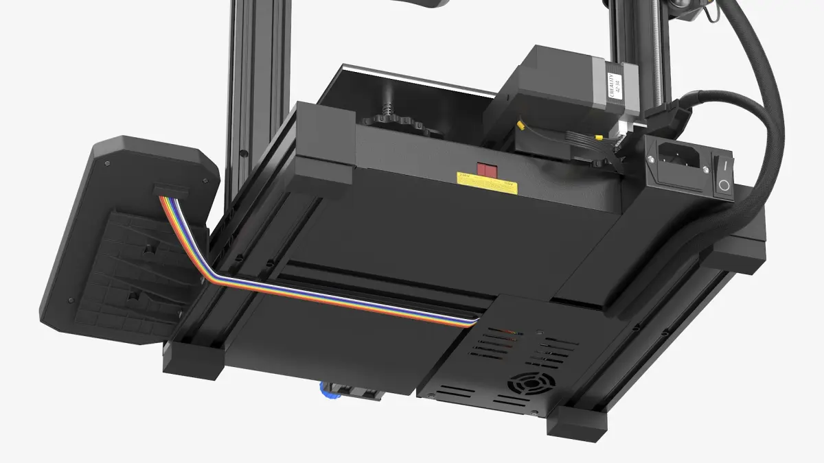 Creality Ender-3 V2 Desktop 3D Printer Black is a 3d model of a desktop 3D printer, designed for creating three-dimensional objects through an additive manufacturing process.