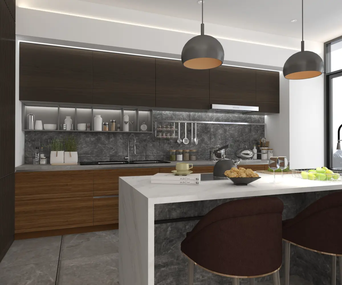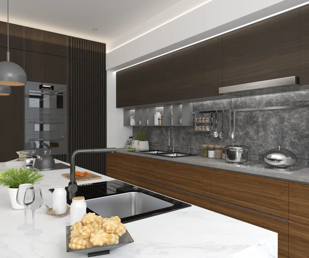 The kitchen is assembled in such a way that you can easily change it to your project.